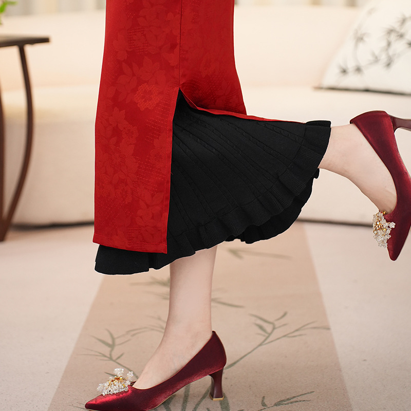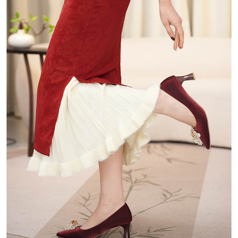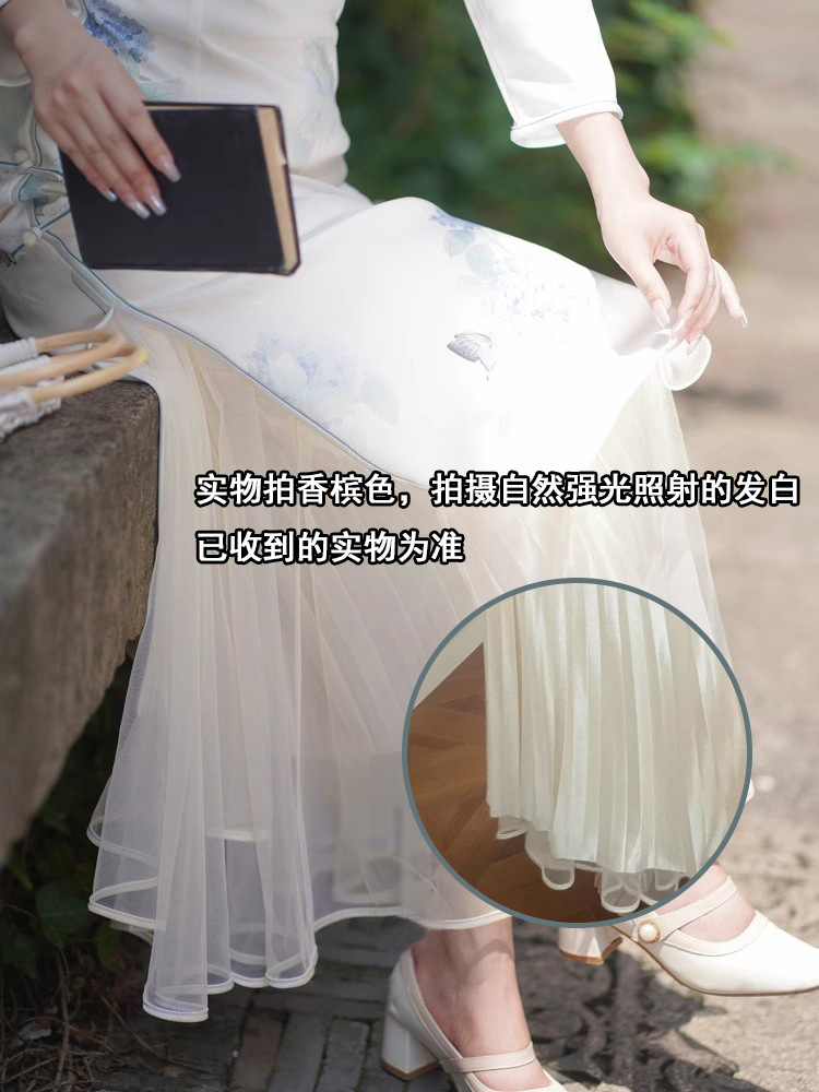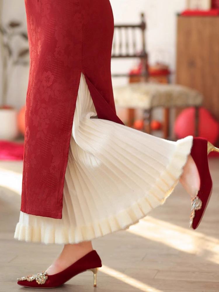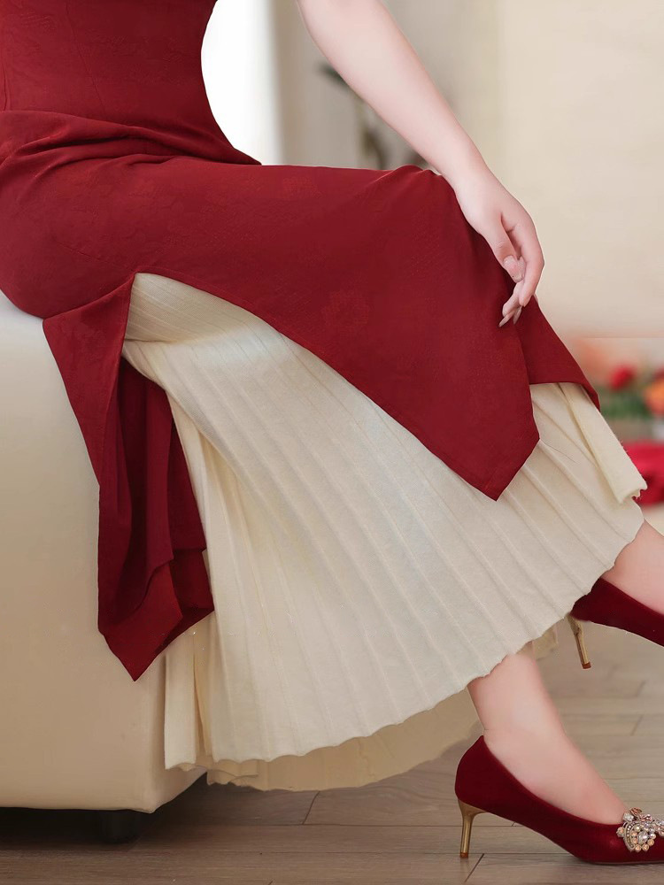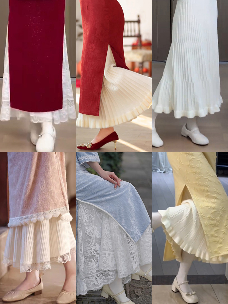 Cheongsam Inner Layer With A Pleated Midi Skirt For Women To Prevent Wardrobe Malfunctions