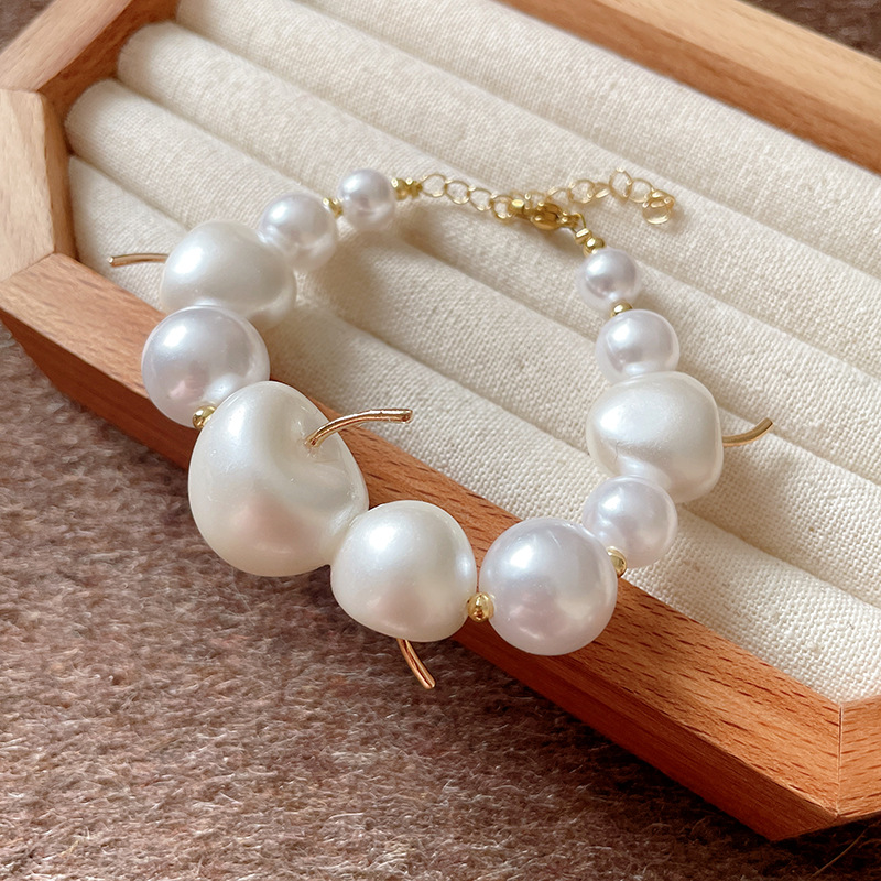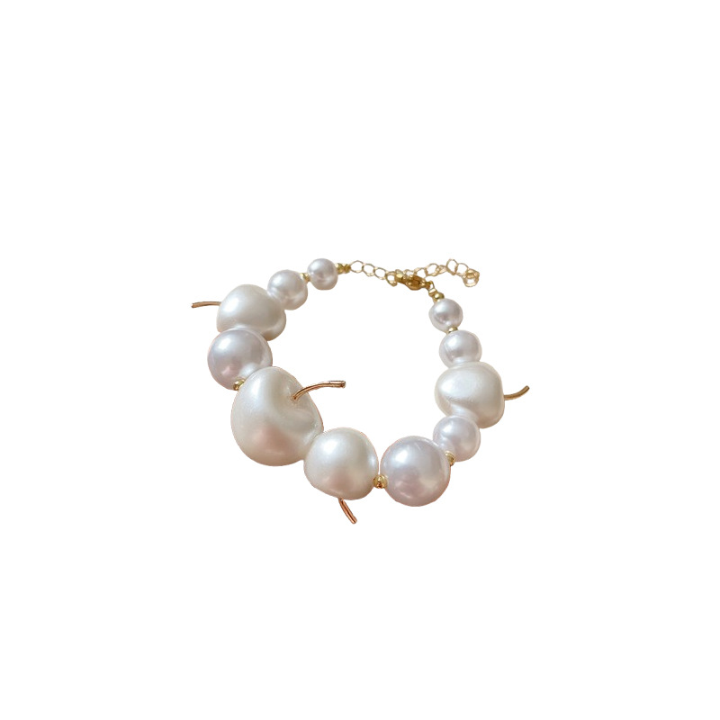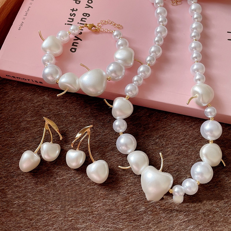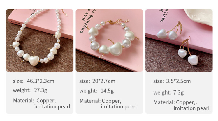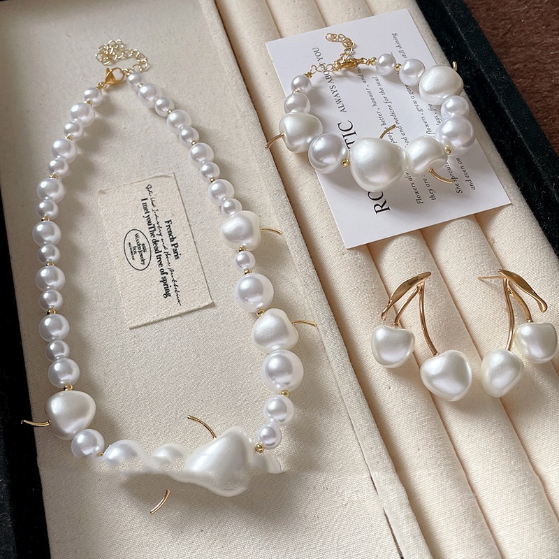 Color: necklace-Golden-White-8-10mm, Silver Needle-Gold White, bracelet-Gold White