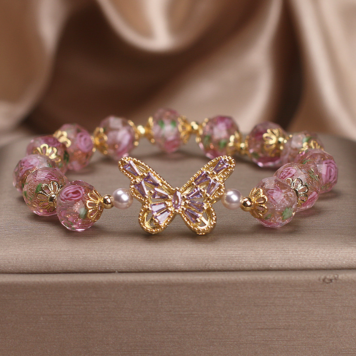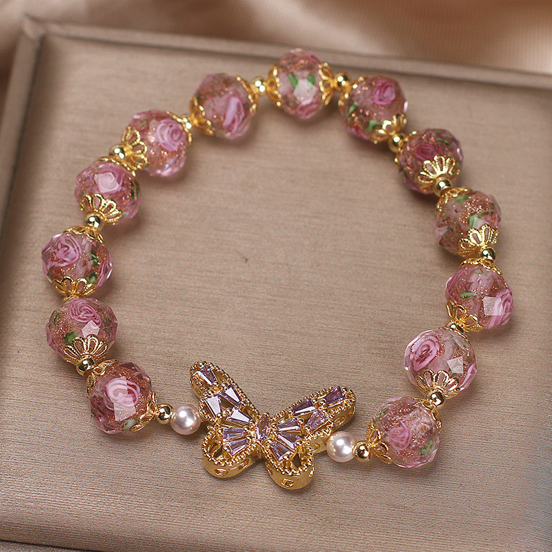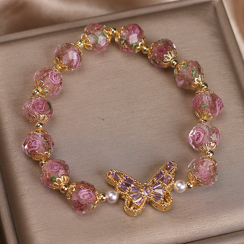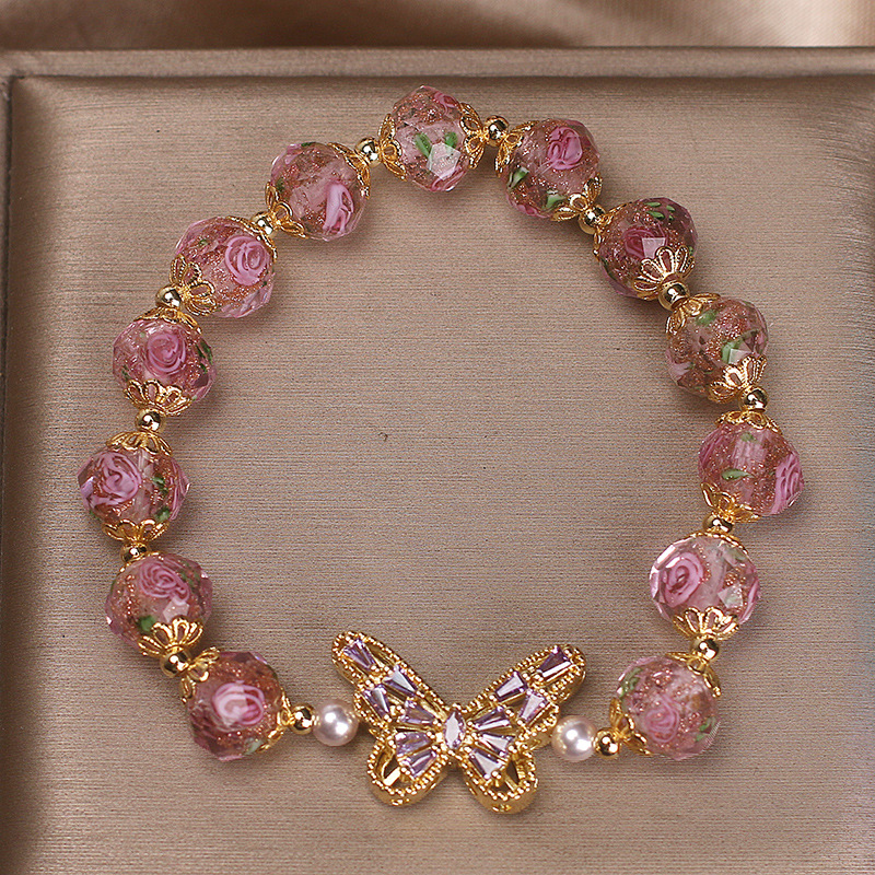 Color: pink cherry blossom glass diamond butterfly