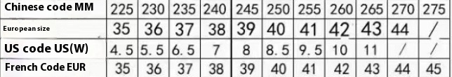 Size: 35, 36, 37, 38, 39, 40, 41, 42, 43