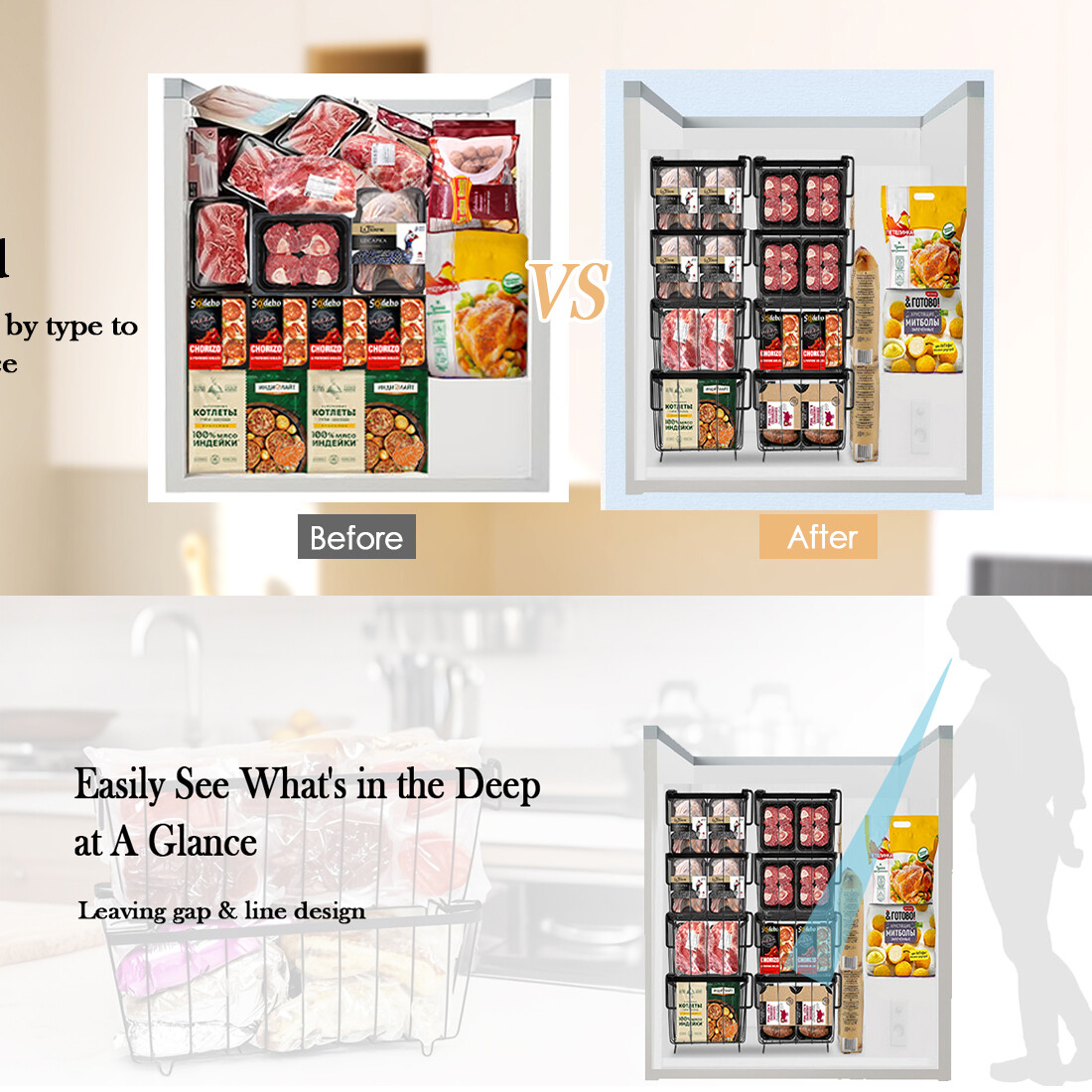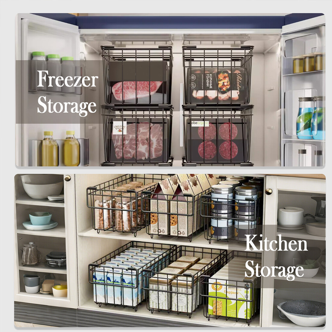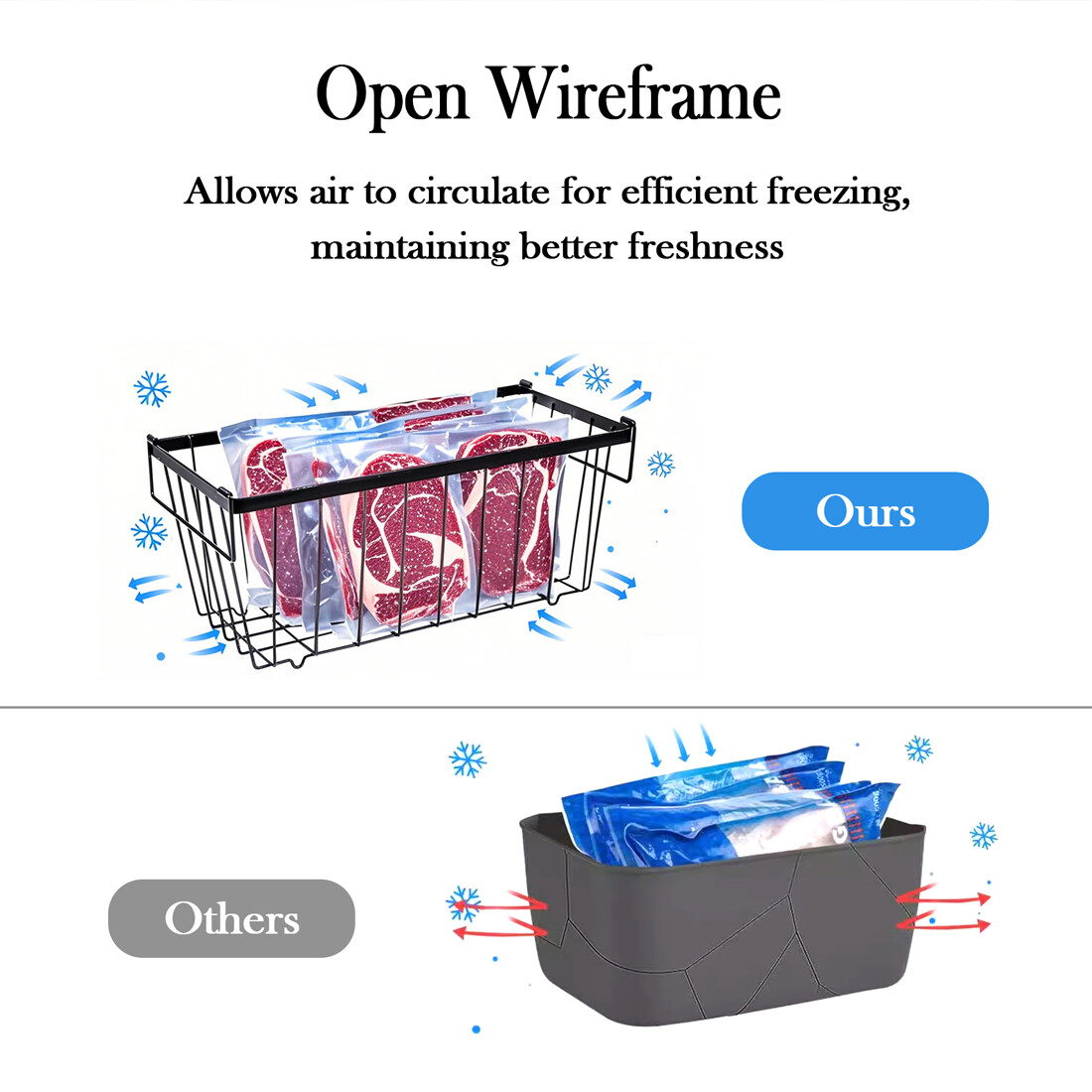 [Quick Freezing for Efficient Freshness] Unlike sealed plastic freezer containers, our freezer organizer baskets feature an open wire design that allows cold air to circulate around the food on all side, so the food can be frozen faster, and better preserving the freshness of food