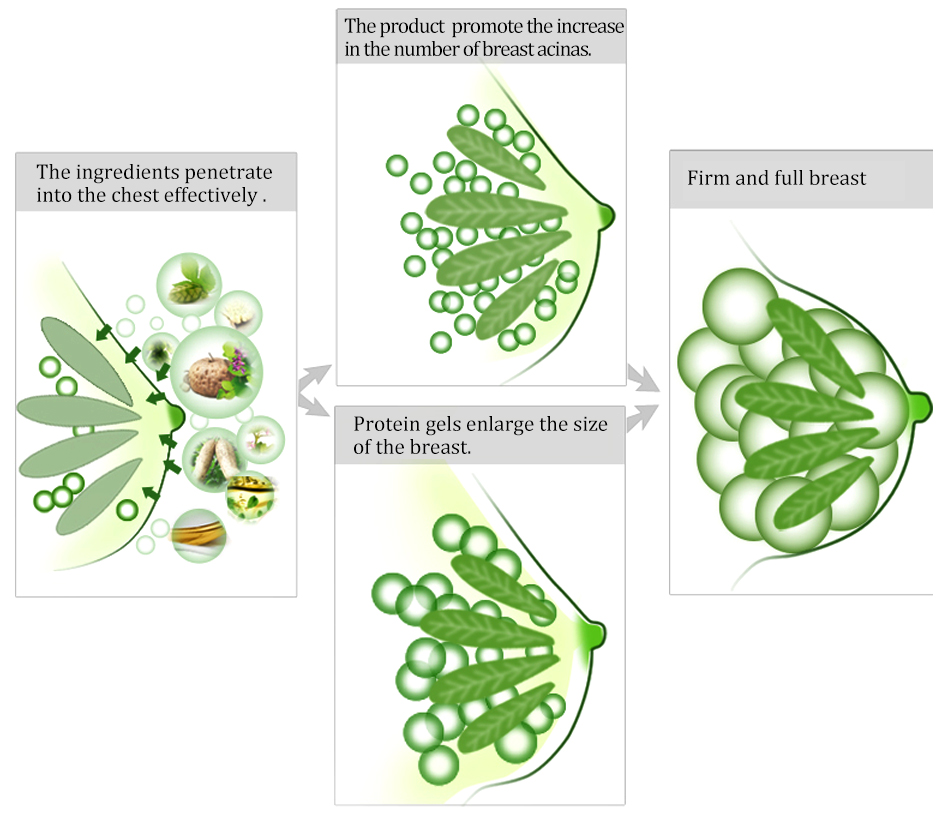 Use: apply the cream on the breast and massage for 5 minutes, twice a day, morning and evening. Normally taking the amount of peanut size cream is the optimum.