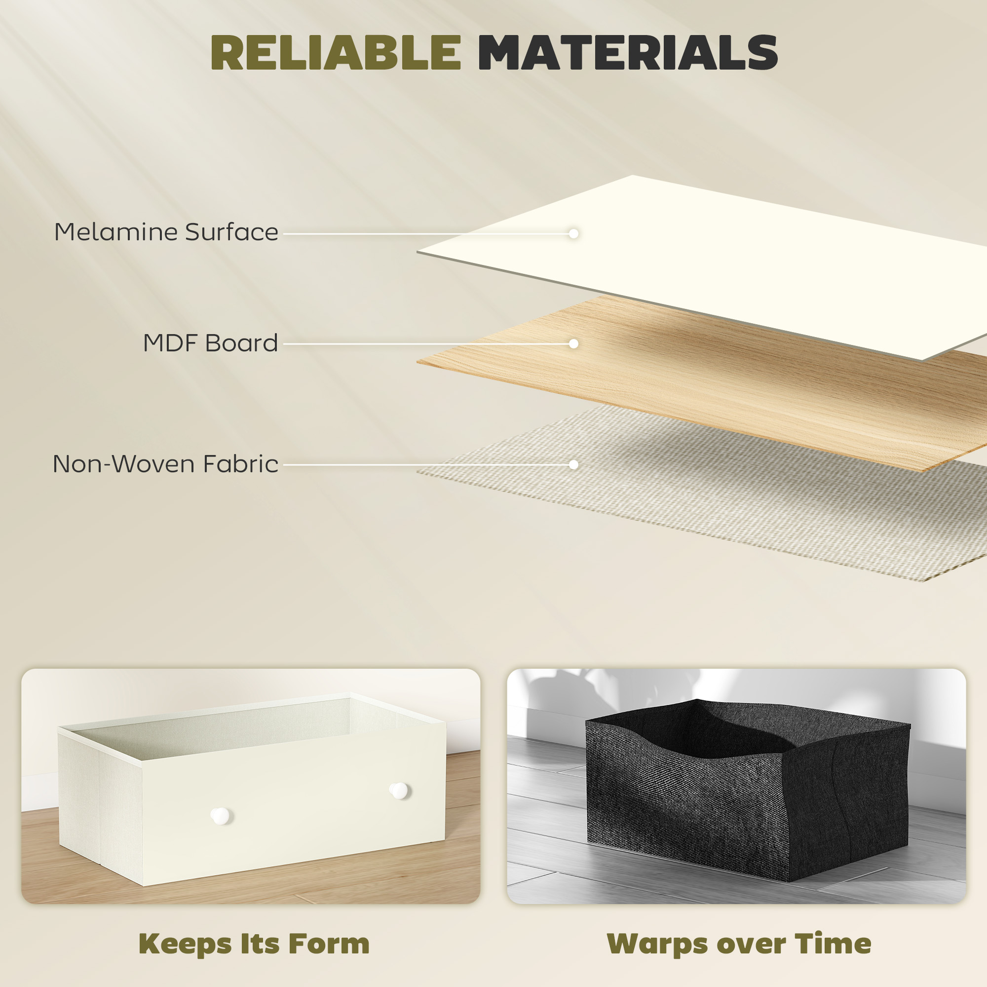 Bring style and order to your bedroom with this chest of drawers from . Featuring four foldable fabric drawers, it makes sorting clothes like T-shirts, jeans and socks simple. The two-tone design, white and grey wood-effect, brings a stylish look. The MDF and steel frame ensures stability, while anti-tip straps add safety. Transform your space into a serene haven with this dresser.