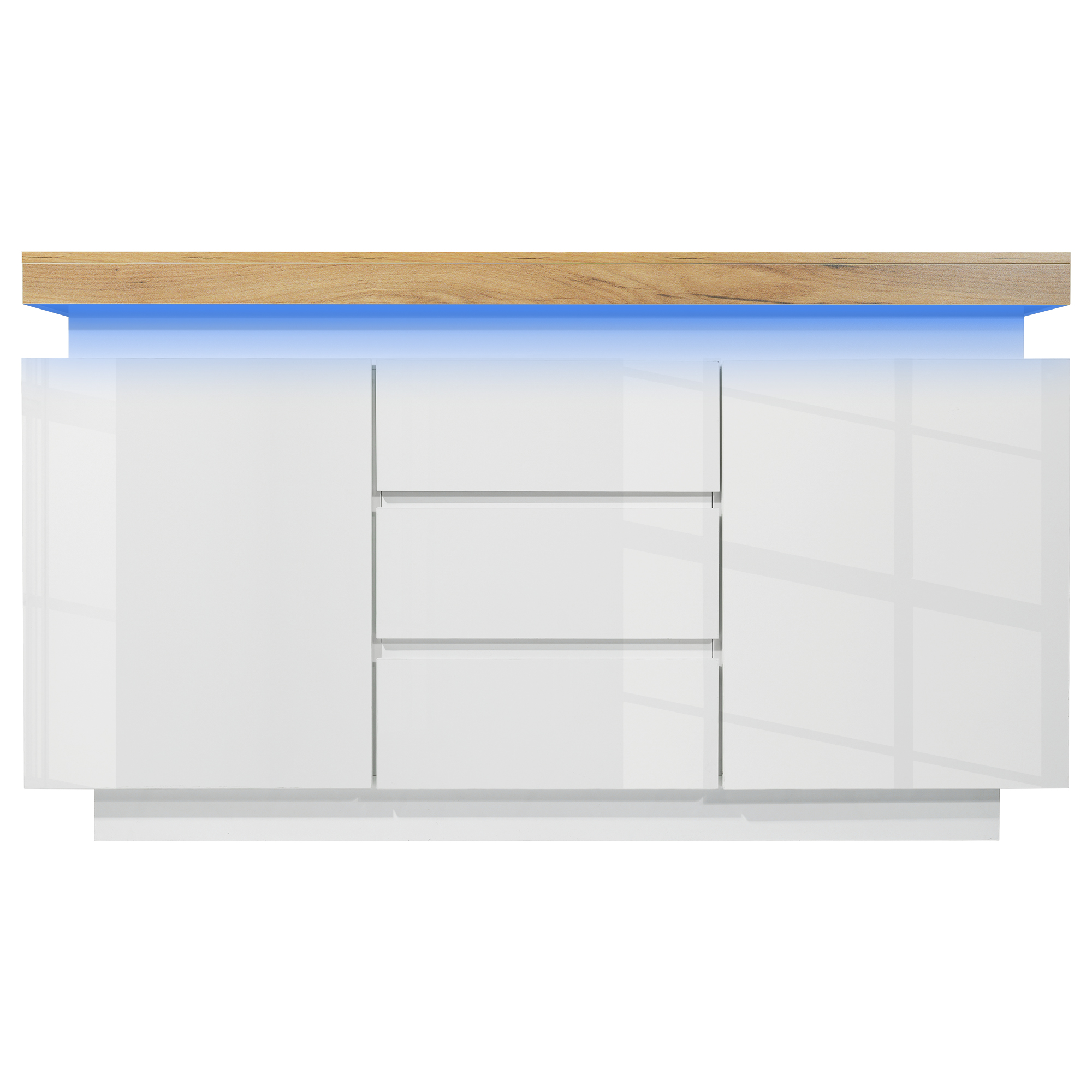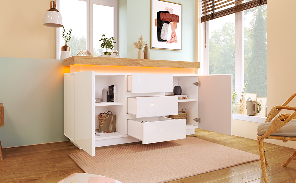 Product Name:Chest of Drawers,High-gloss Sideboard Cabinet with 2 Doors and 3 Drawers,Storage with RGB LED(App-controlled),Multi-purpose Cabinet for Living Room and Bedroom, 81 x 140 x 39 cm, White