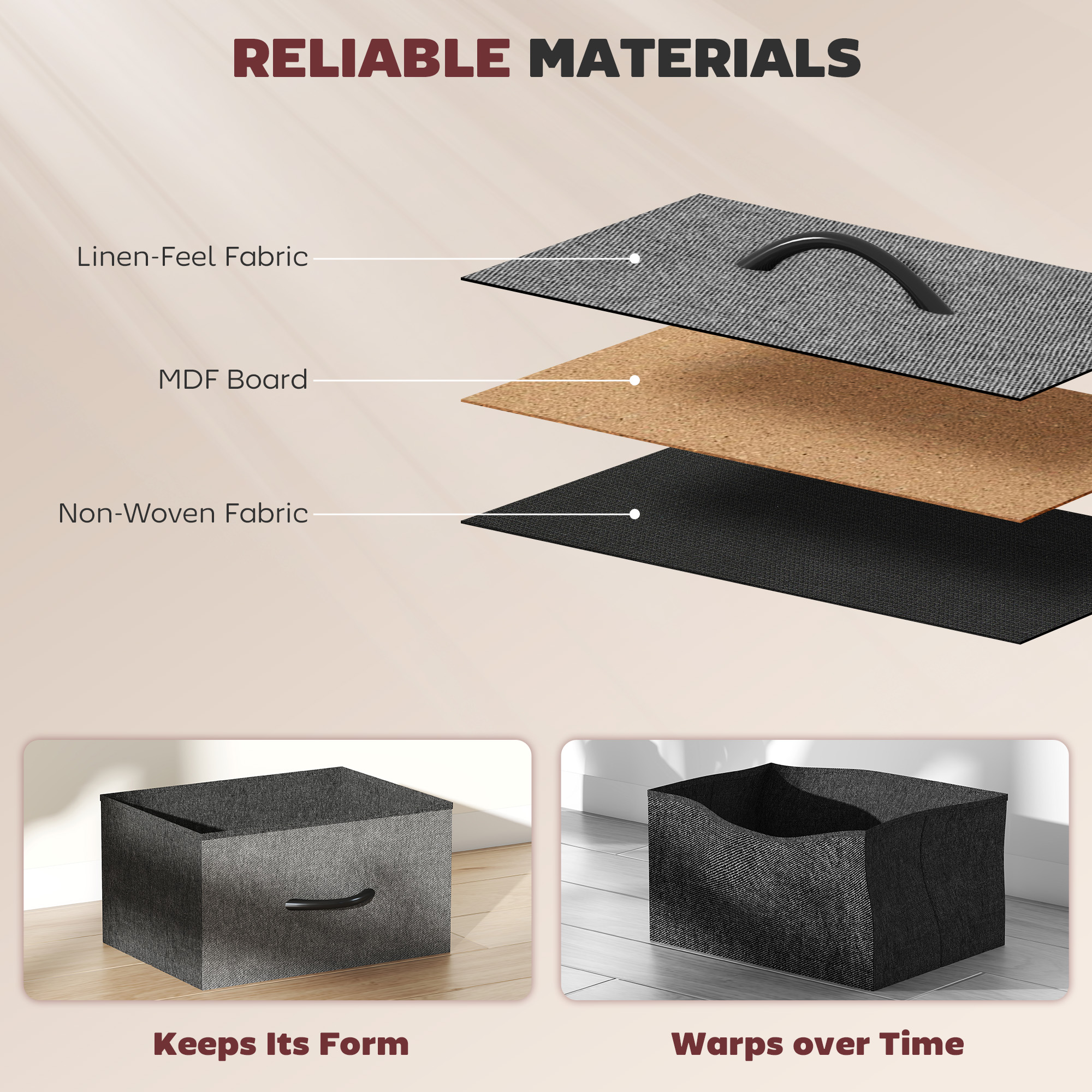 Easy, simple storage with this fabric chest of drawers. With eight same drawers, it's easy to sort everything from socks to pants. It also features four side pockets and two hooks to get smaller accessories altogether. A steel frame with X-bars keeps this bedroom dresser stable, finished with adjustable feet for balance - even on unsteady grounds.