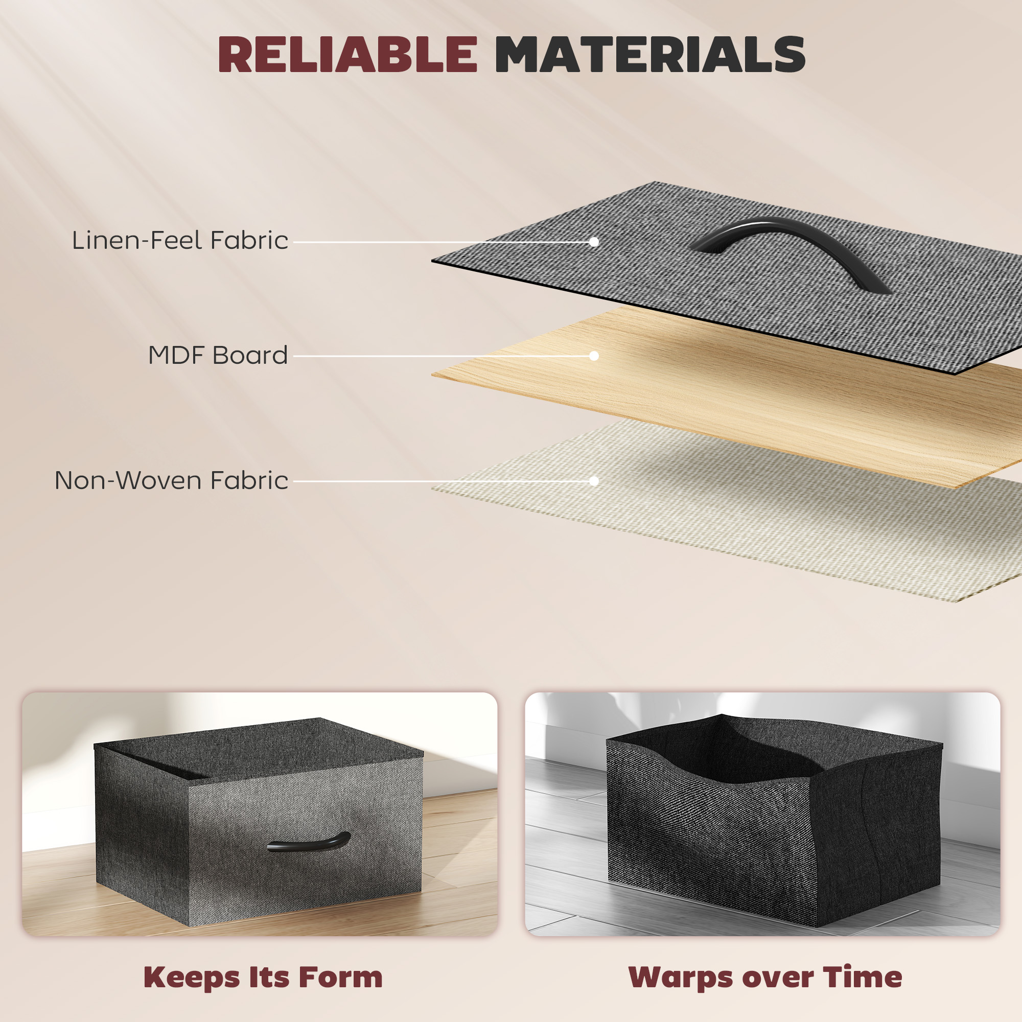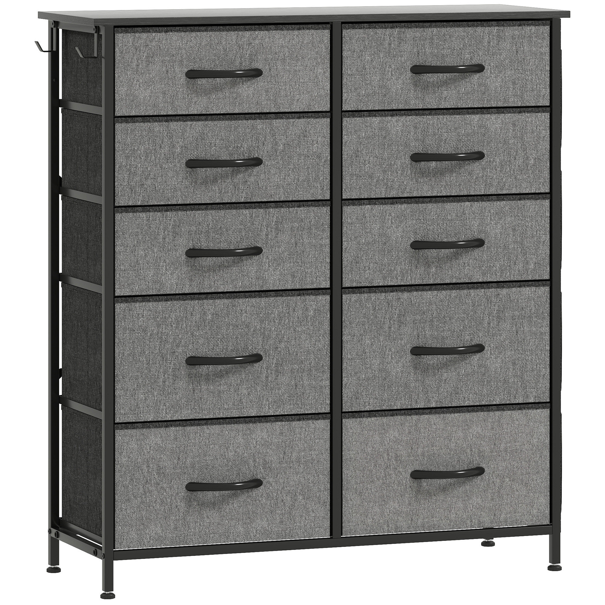 Easy, simple storage with this fabric chest of drawers. With six small and four large drawers, it's easy to sort everything from socks to pants. It also features four side pockets and two hooks to get smaller accessories altogether. A steel frame with X-bars keeps this bedroom dresser stable, finished with adjustable feet for balance - even on unsteady grounds.