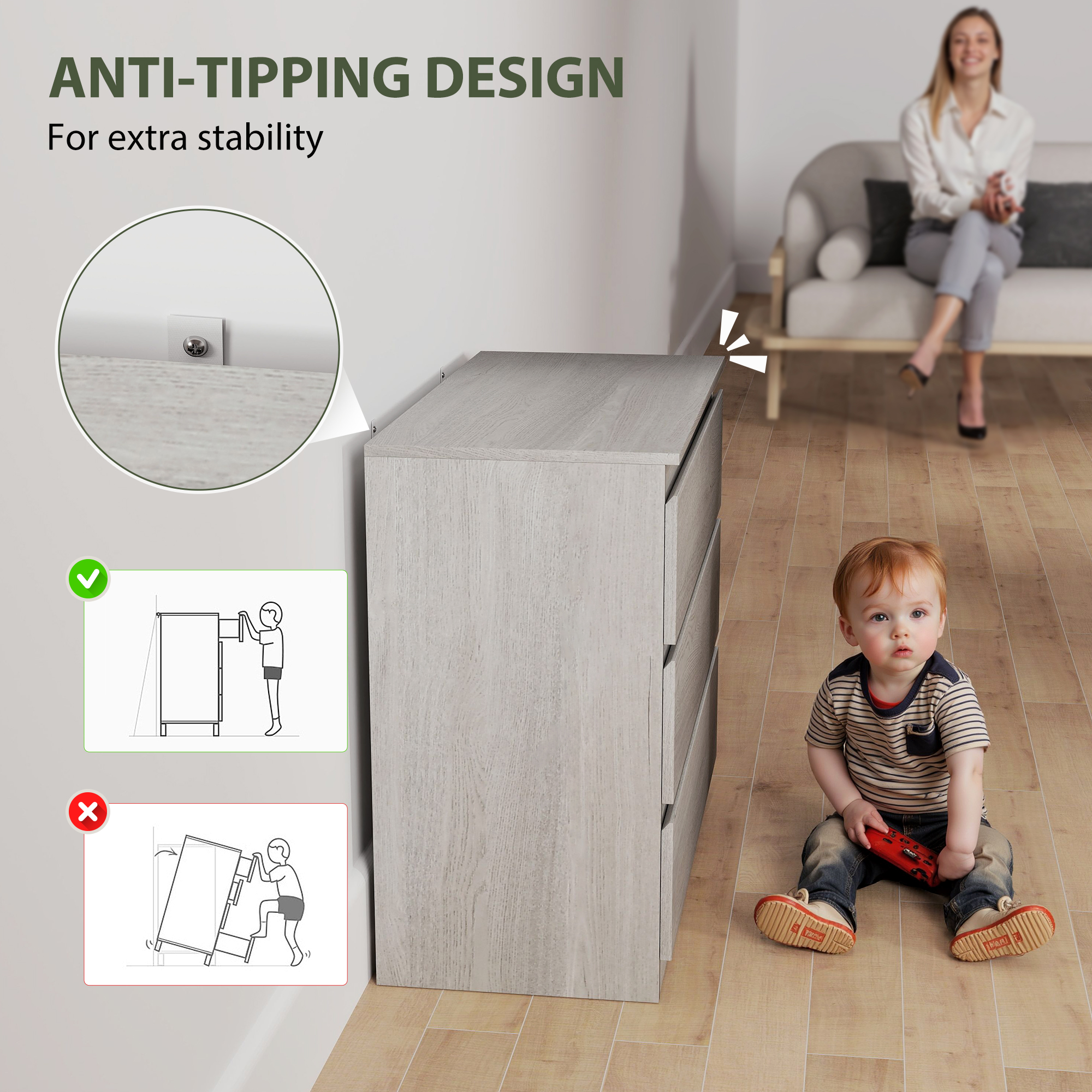 Add some style and organisation into the bedroom - do it with this dresser. Features three drawers for plenty of storage - keep tees, tops, trousers, underwear and more stored together. Made from particle board, it's stable enough for everyday use, with a flat top to offer display room. Comes with anti-tipping straps for safety.