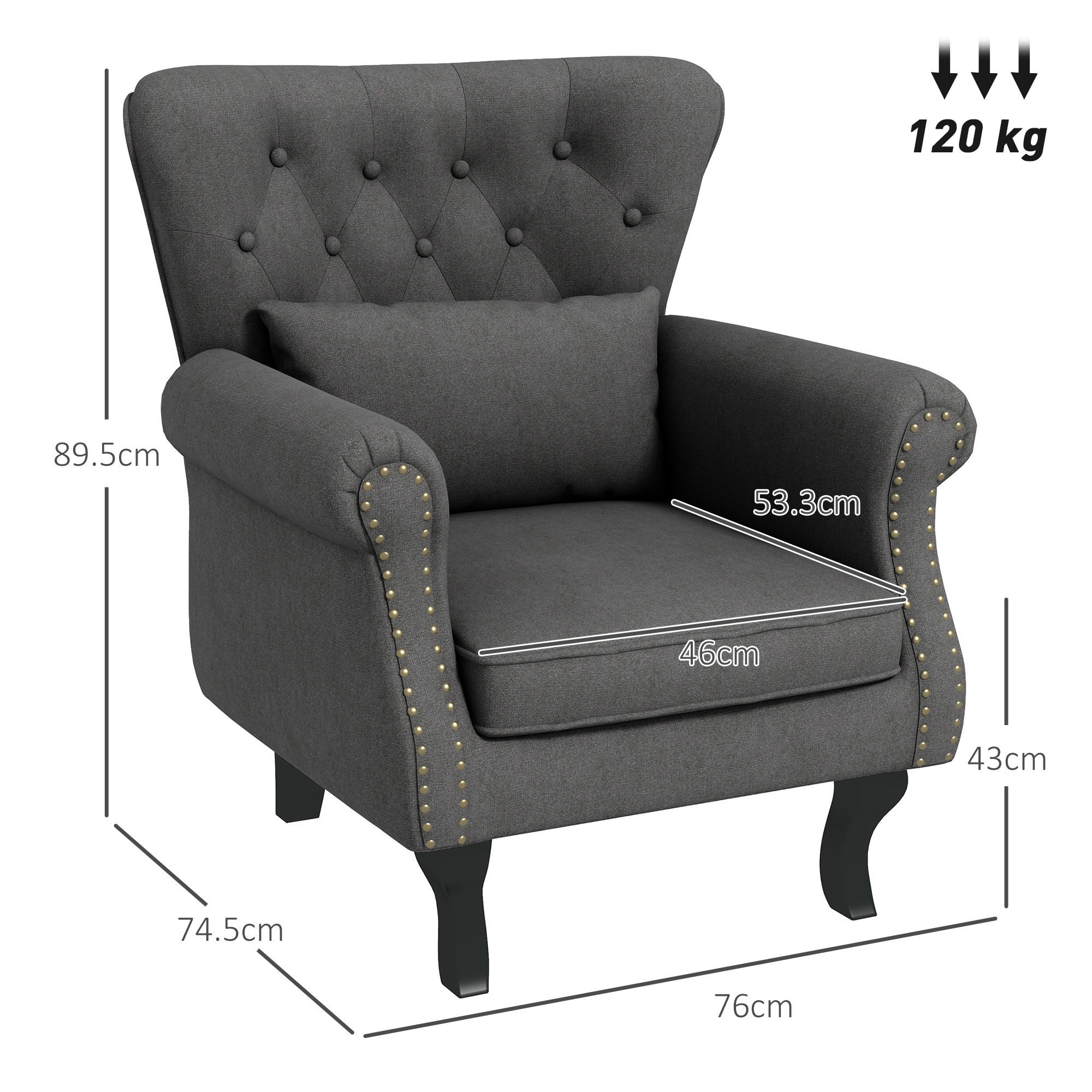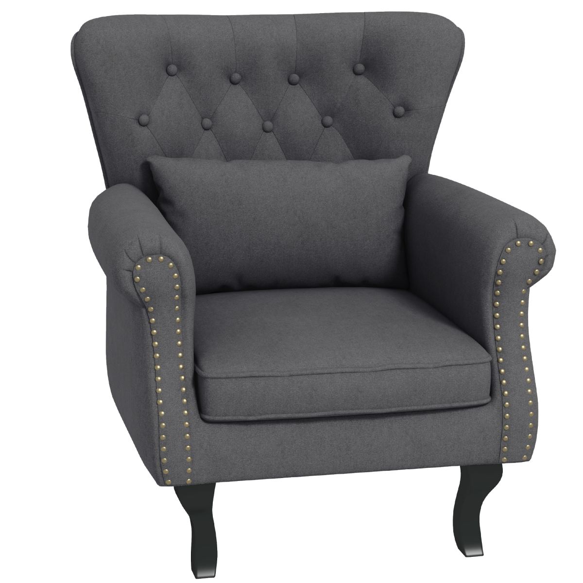 For all over the home, this comfy chair from is a place to relax whenever you want. Thick padding to sink into, with 'S' springs and elastic band to retain the shape. The wingback chair has button tufting on the back, rolled arms with nailhead trim and curved legs for a stylish Chesterfield-style look.