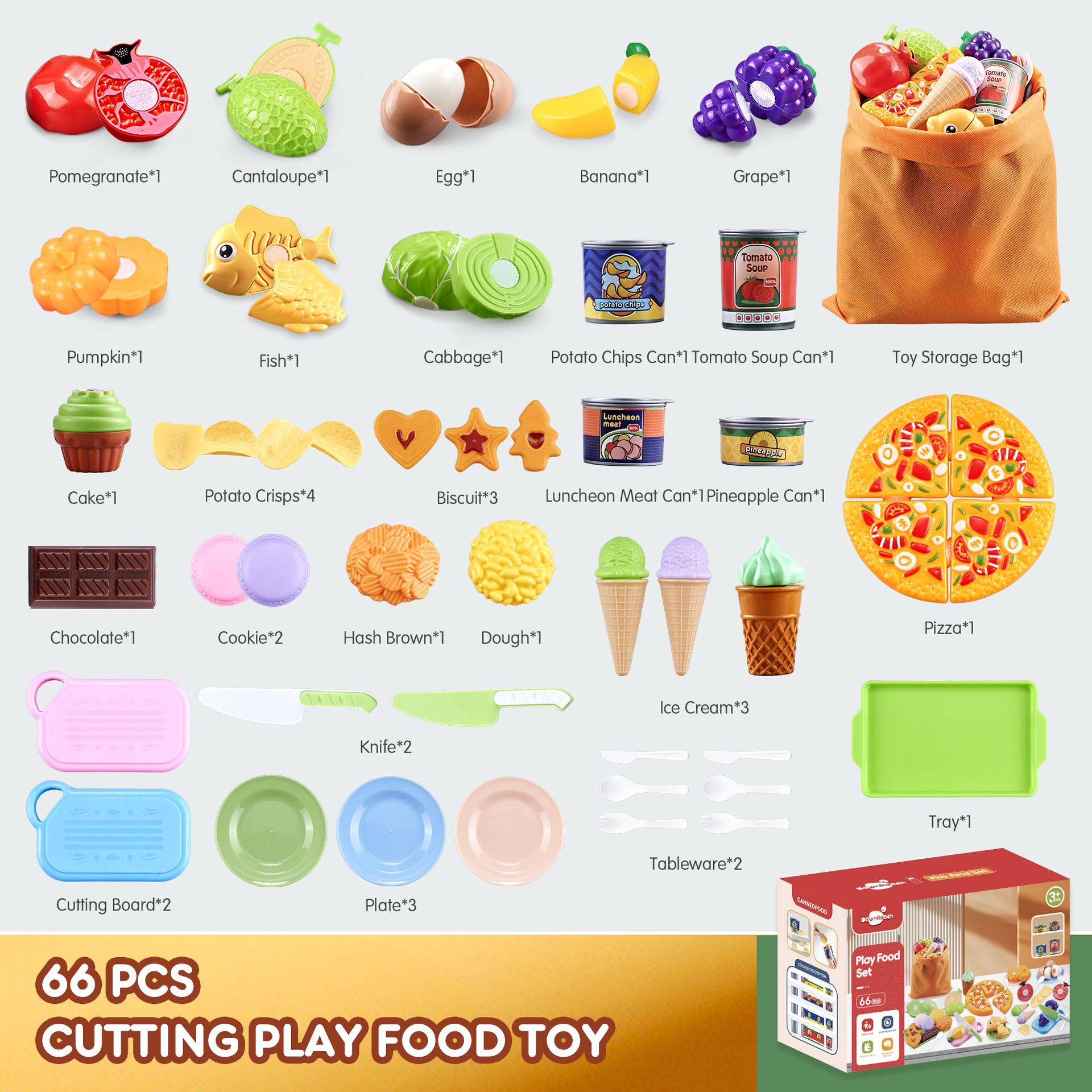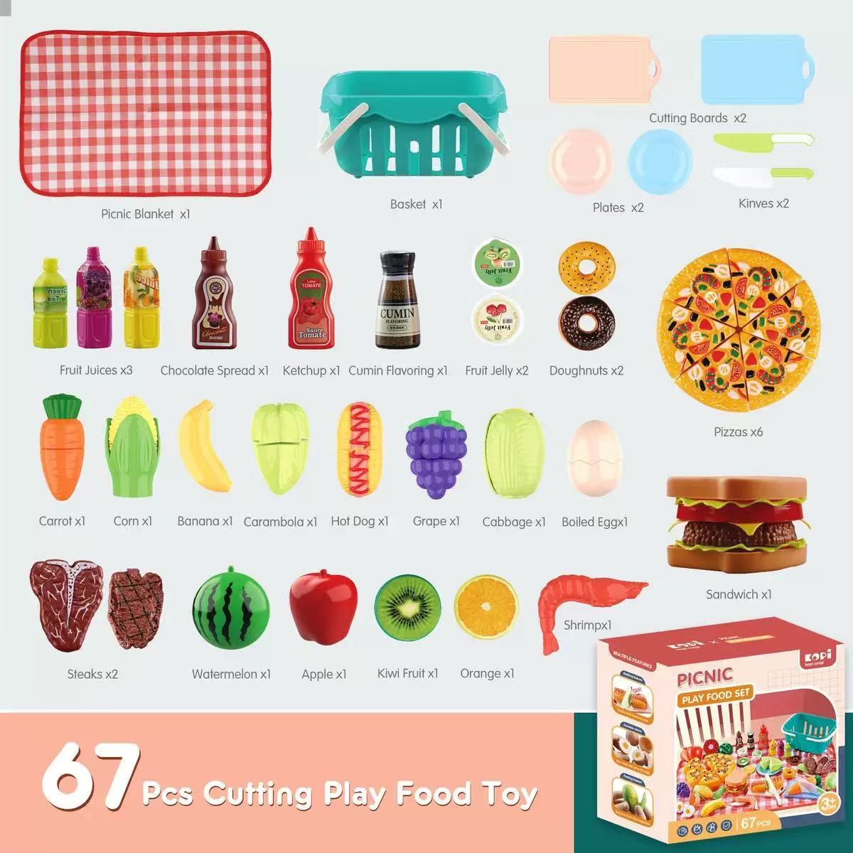 Colors: Pretend Play Kitchen Cutting Fun Set – 47 pcs, Picnic Cutting Fun Set – 67 pcs, Ice Cream Cutting Fun Storage Bag Set – 66 pcs