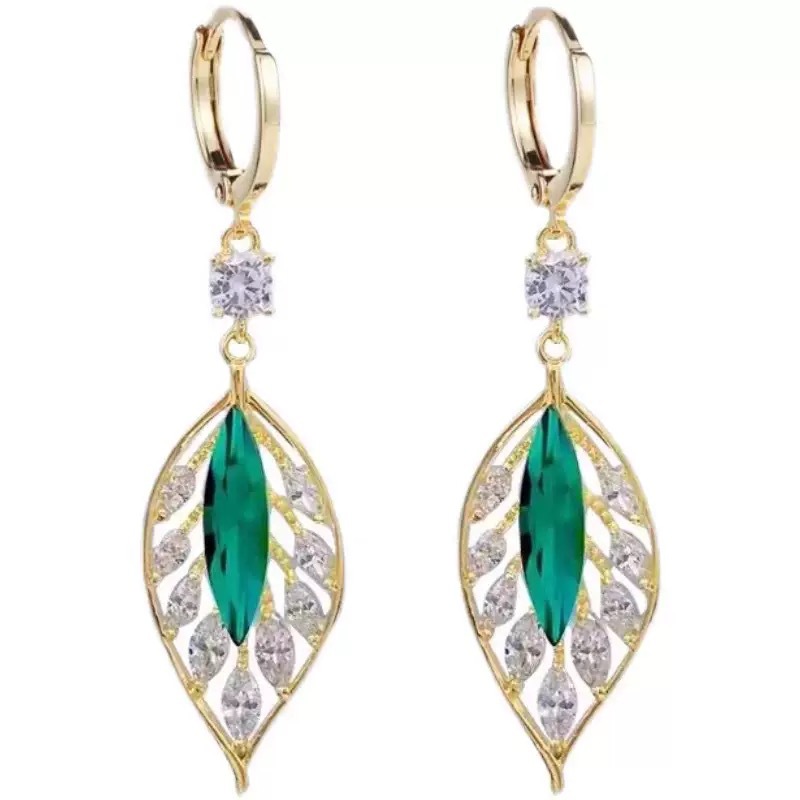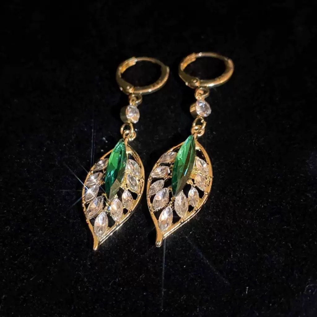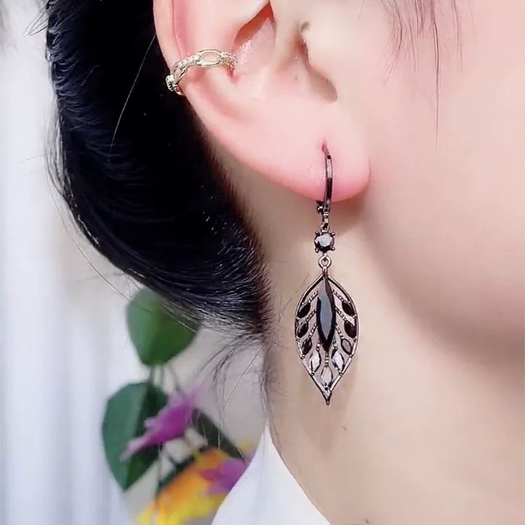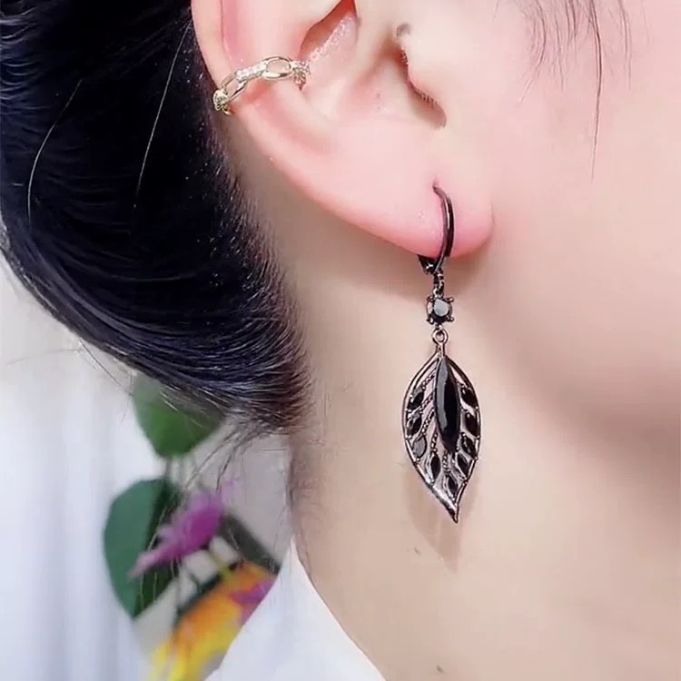 Color: Vintage Black Leaf Earrings, Gold Green Leaf Earrings