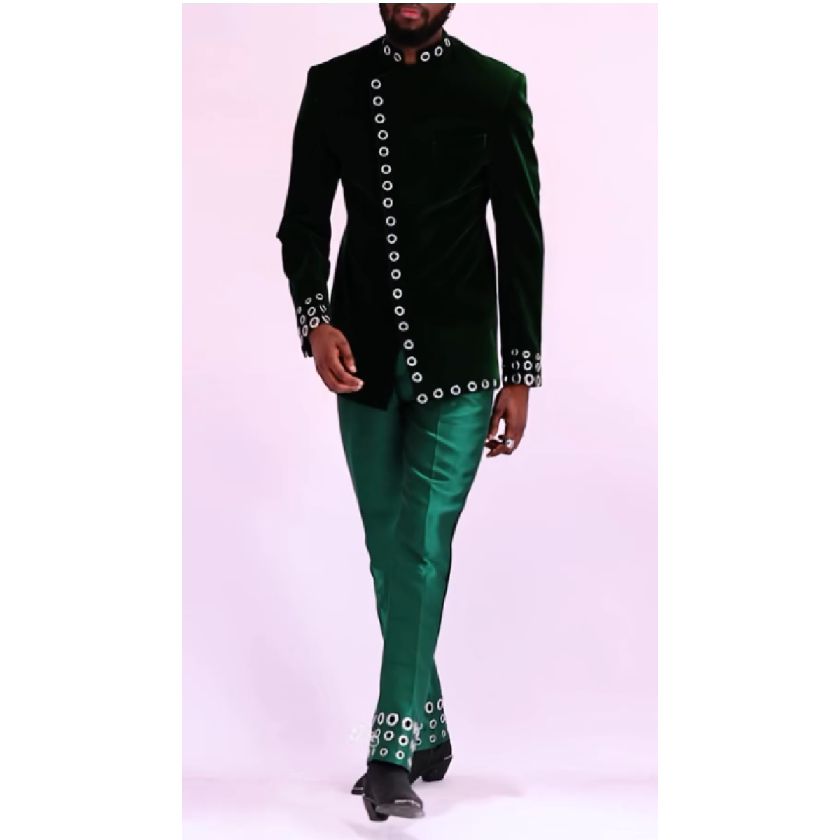 Chic Dark Green Formal Ensemble With Adjustable Eyelet Trim And Structured Silhouette