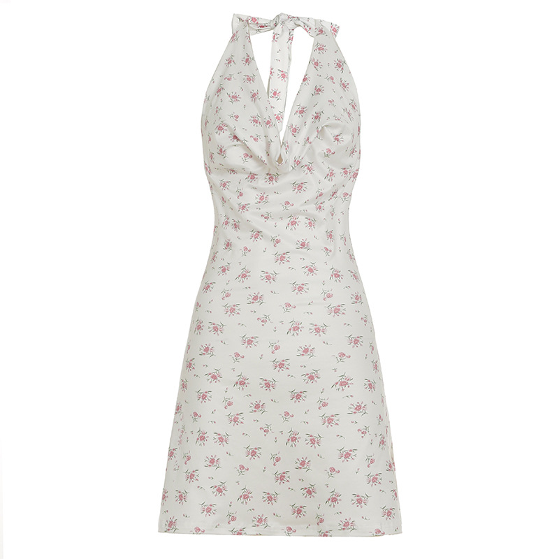 Chic Sleeveless Halter Dress With Ruffled Hem