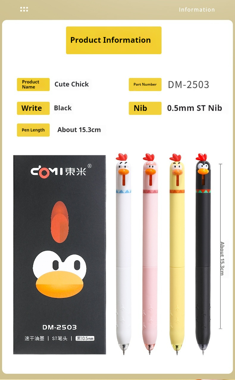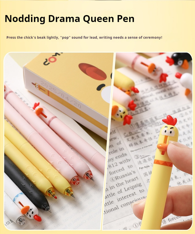 Product information:Series: cute pet chicken Color: black, white, pink, yellow Shell Material: Plastic Pen head: 0.5mm