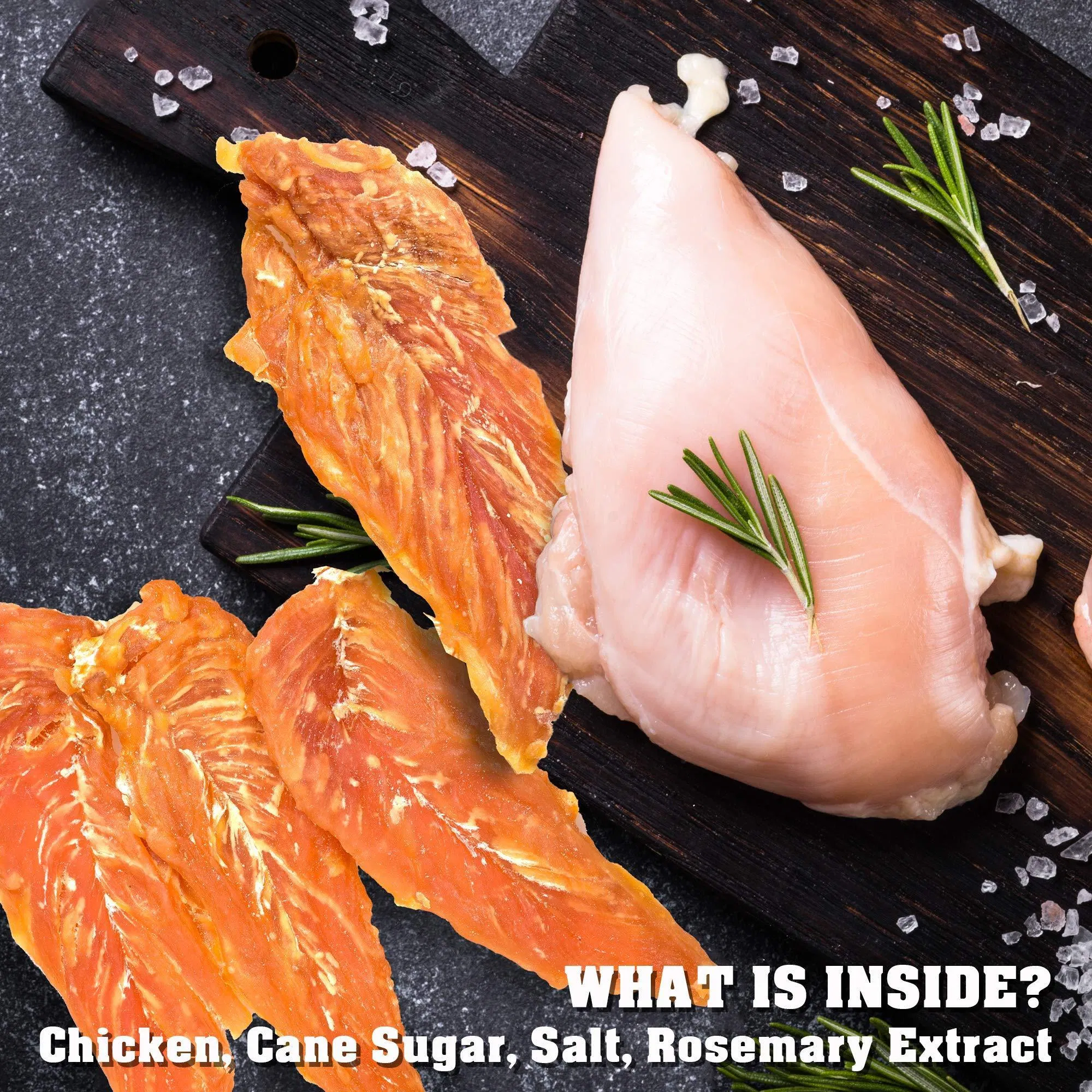 chicken jerky made of 100% chicken meat: you need to let your dog enjoy high quality natural and healthy food. it is right to choose our product. dog chewies are perfect for training, these top jerky will last a long time and can special promote dogs' teeth healthy. have less plaque and tartar. keeps dogs' jaws strong and breath fresher.