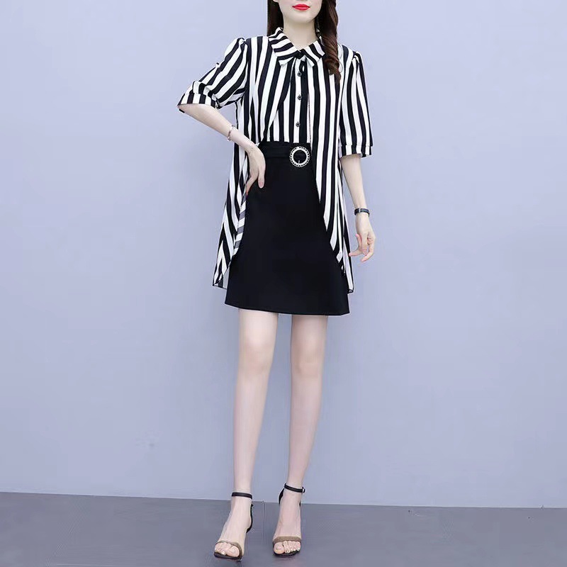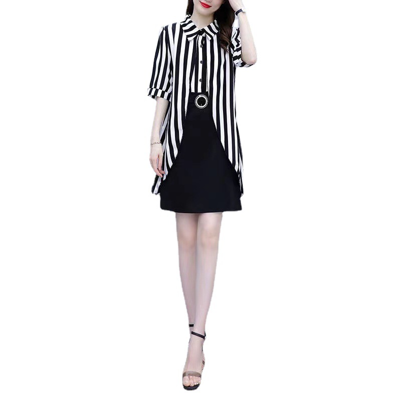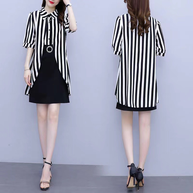 Color: black and white dress, white