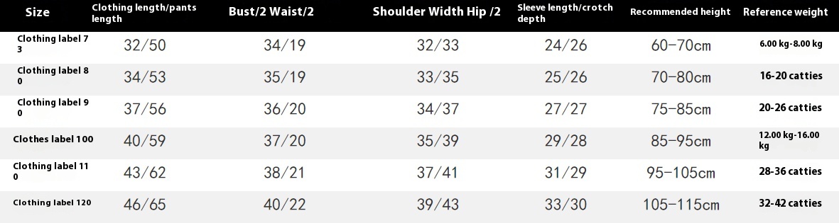 Suitable height: 73, 80, 90, 100, 110, 120