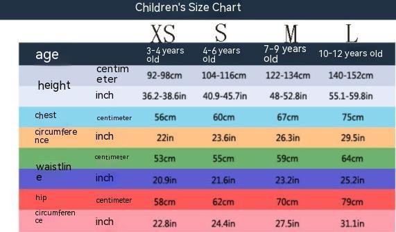 Size: S/4-6 years old 104-116cm children, M/7-9 years old 122-134cm children, L/10-12 years old 140-152cm children