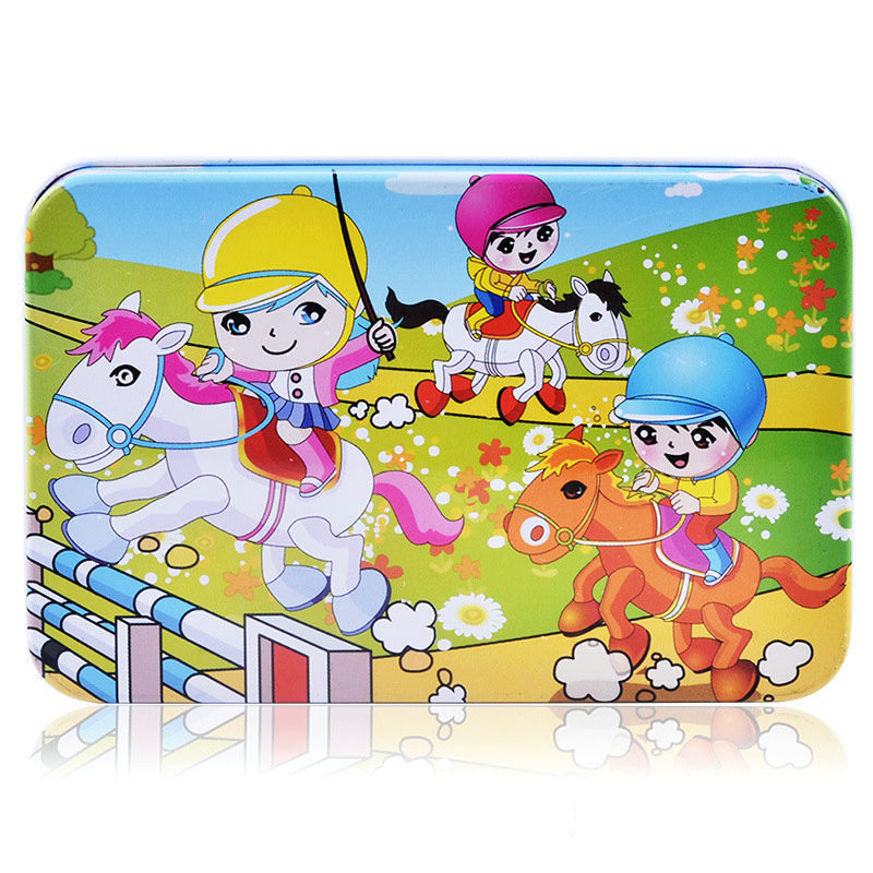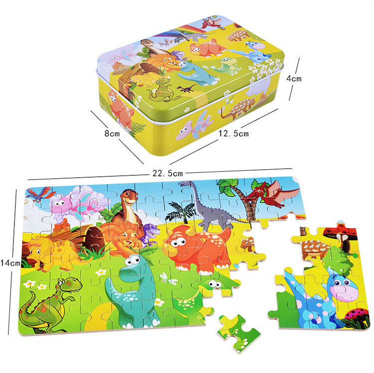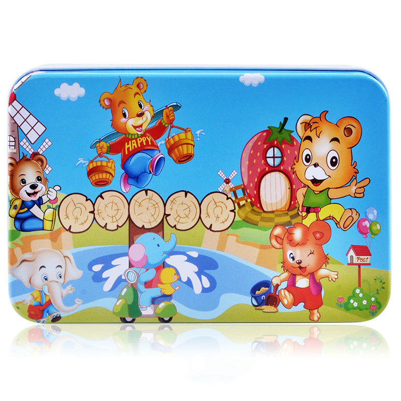 Childre Wooden 60 Piece Iron Box Wooden Puzzle