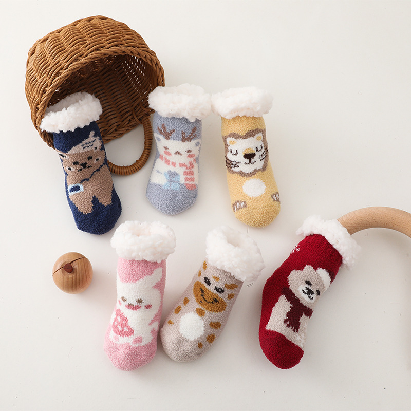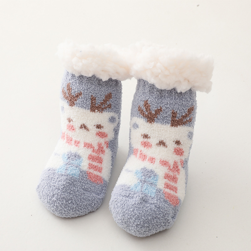 Children Christmas Lamb Velvet Coral Velvet Floor Socks