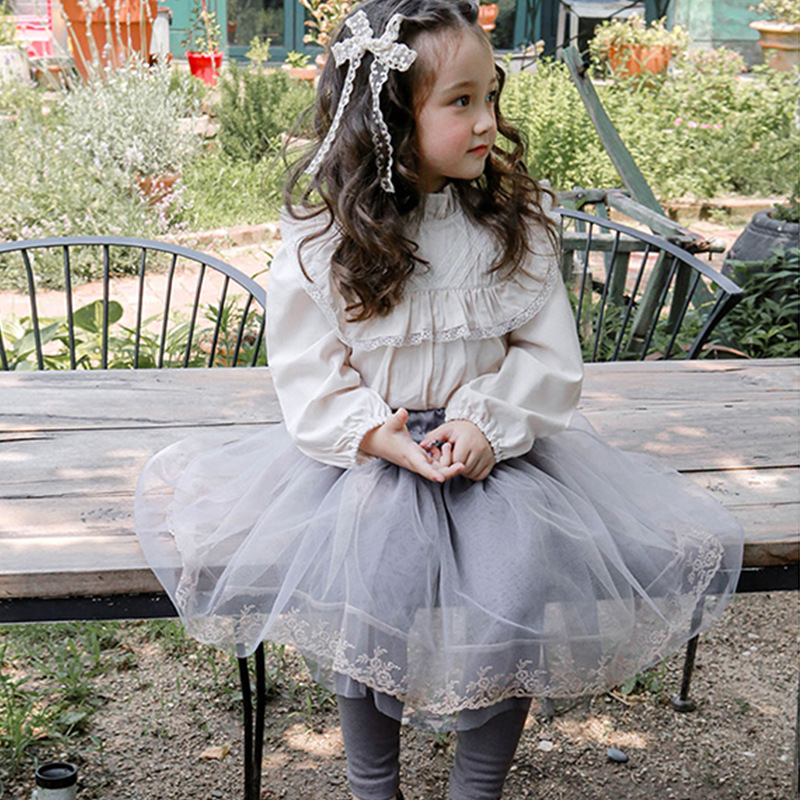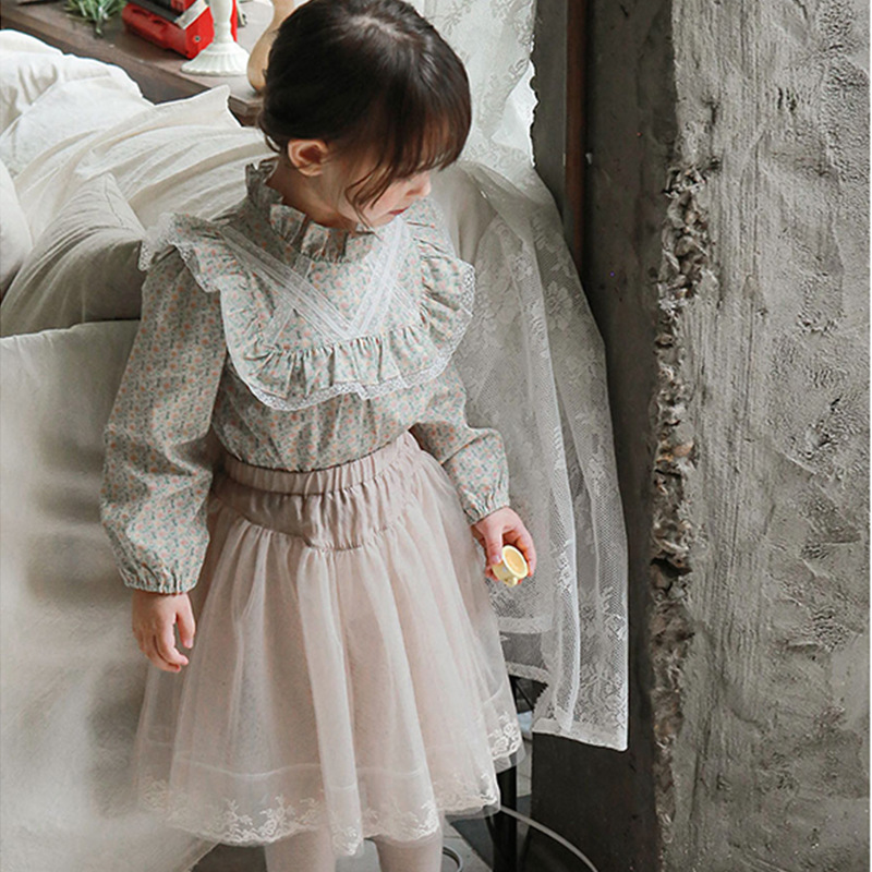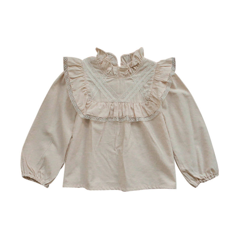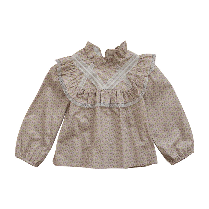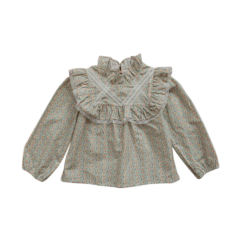 Children Girl Elegant Wood Ear Collar Floral Lady Blouse