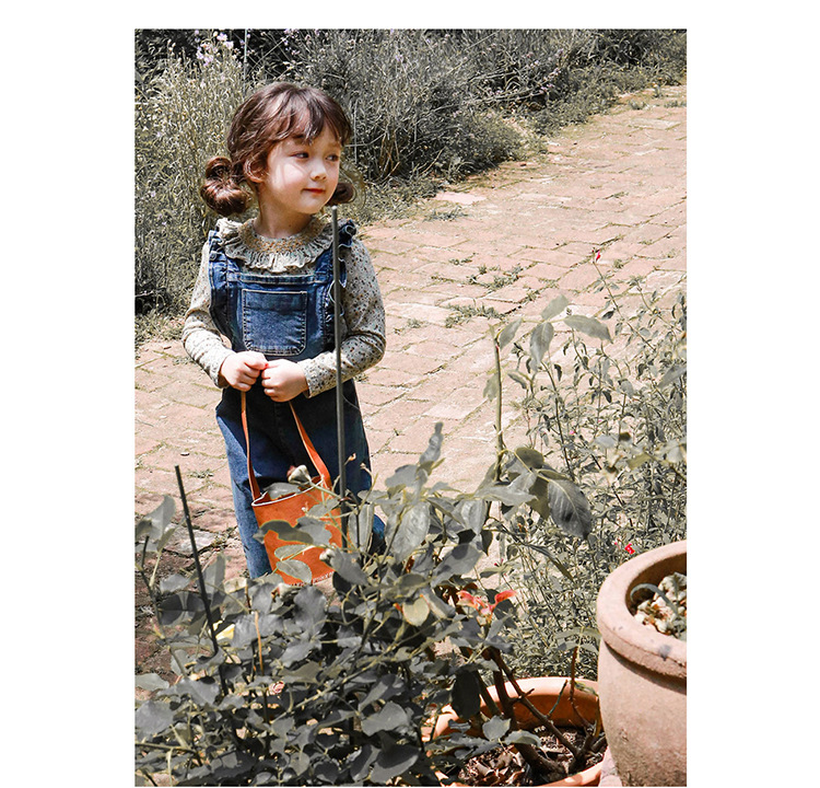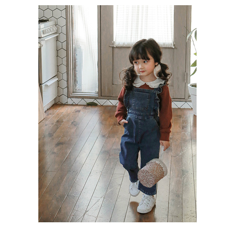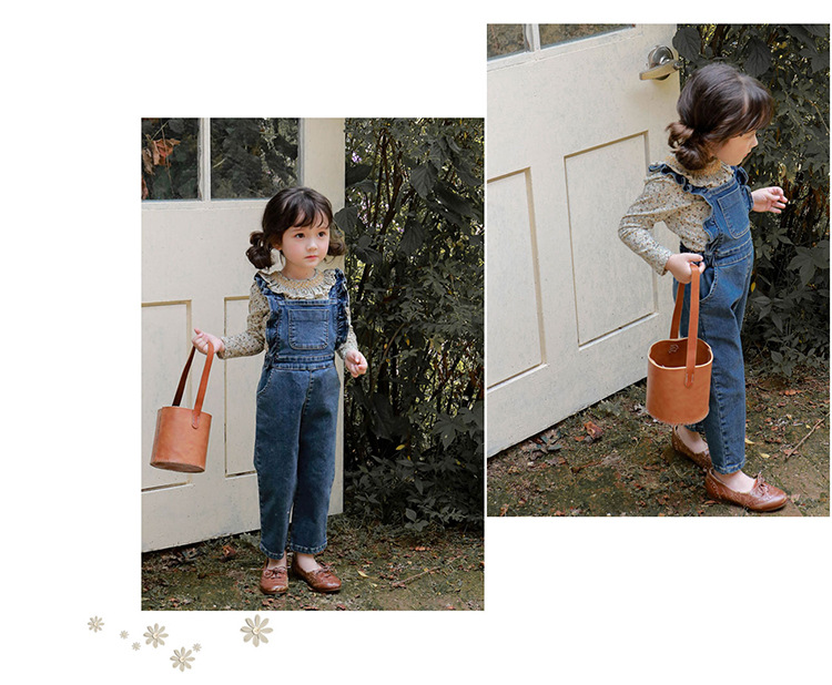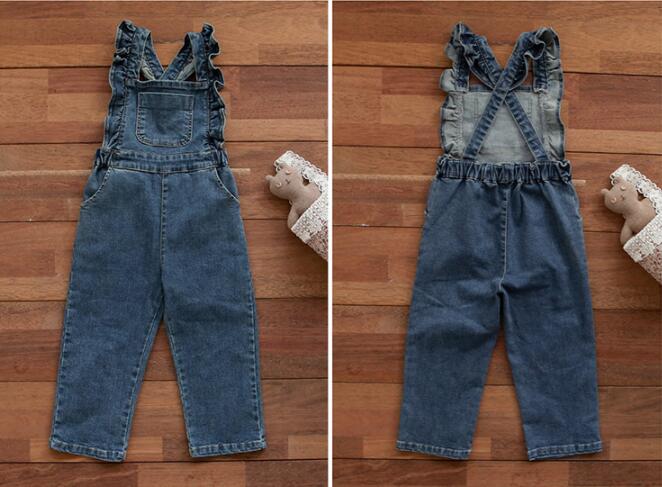 Children Girl Lotus Shoulder Denim Jumpsuit