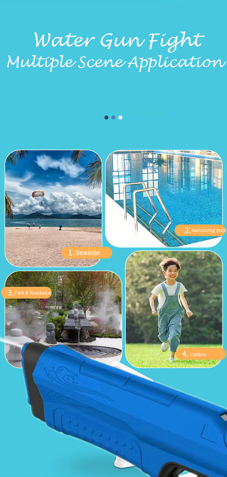 You just pull the trigger — and can fire water “bullets” of up to 12meters/39ft. It can also self-reload in just 10 seconds (you just dunk it in a water source) and has a battery charge that’s good for a whopping 3,500 blasts per charge.