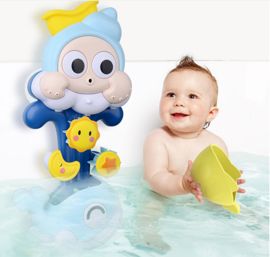 The bathroom is spraying water, the clouds are raining, the windmill is spinning
