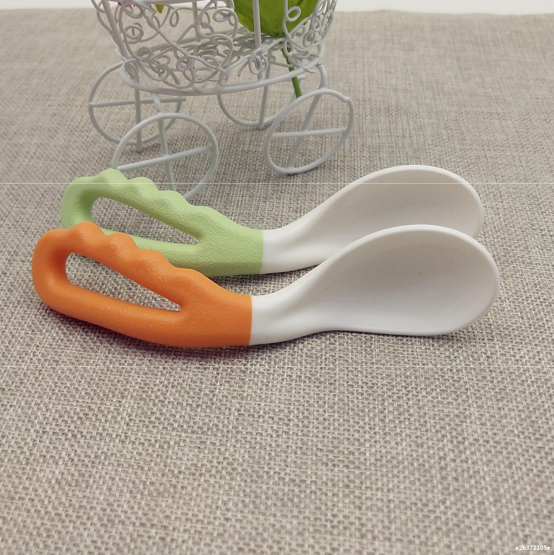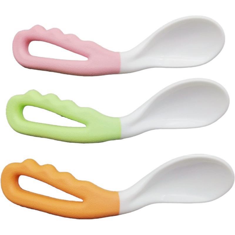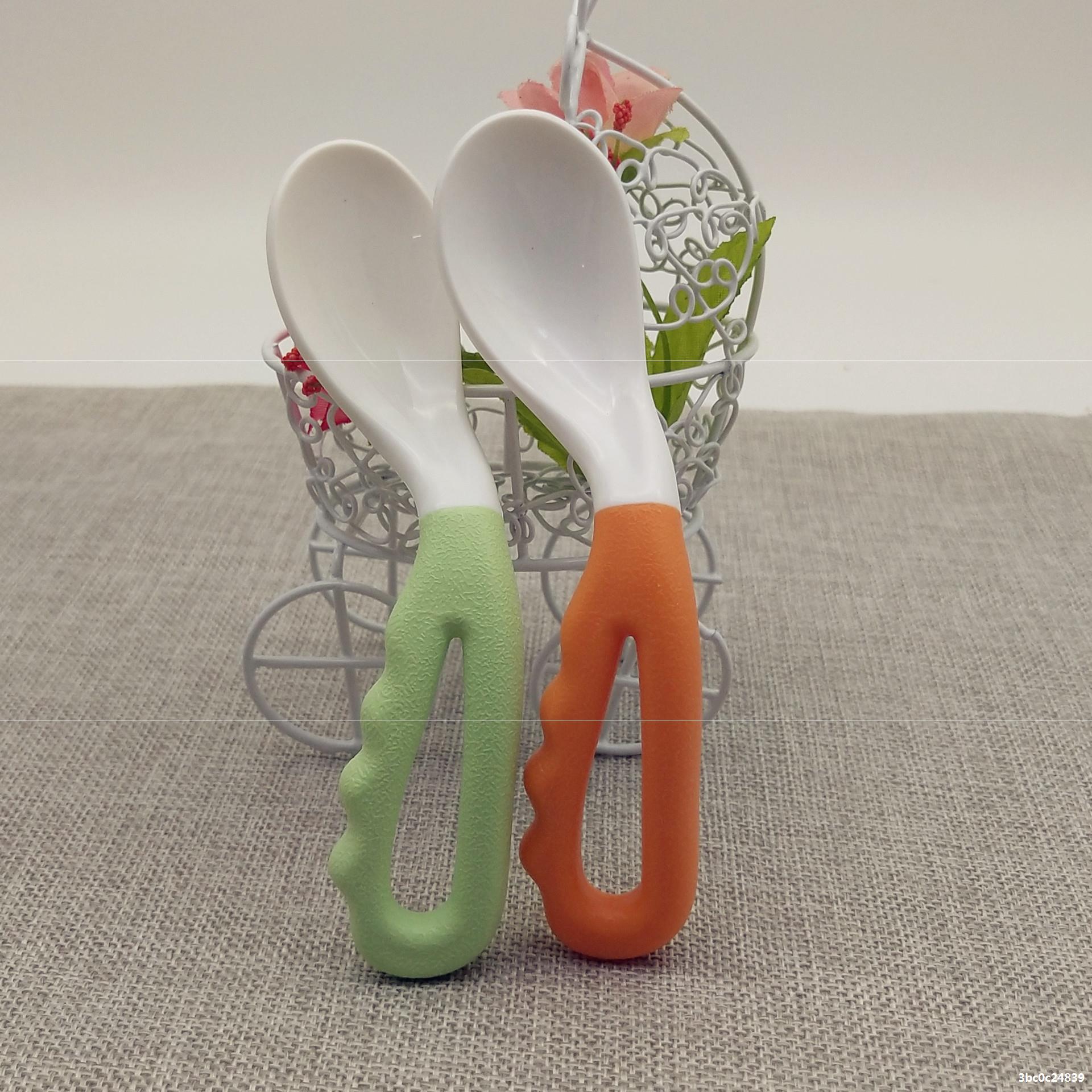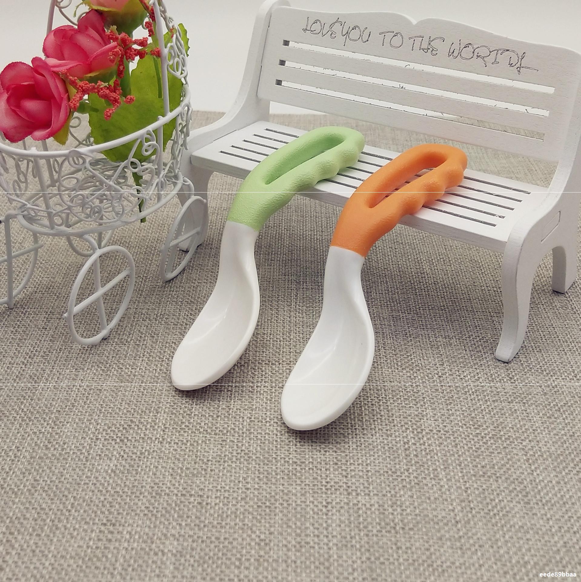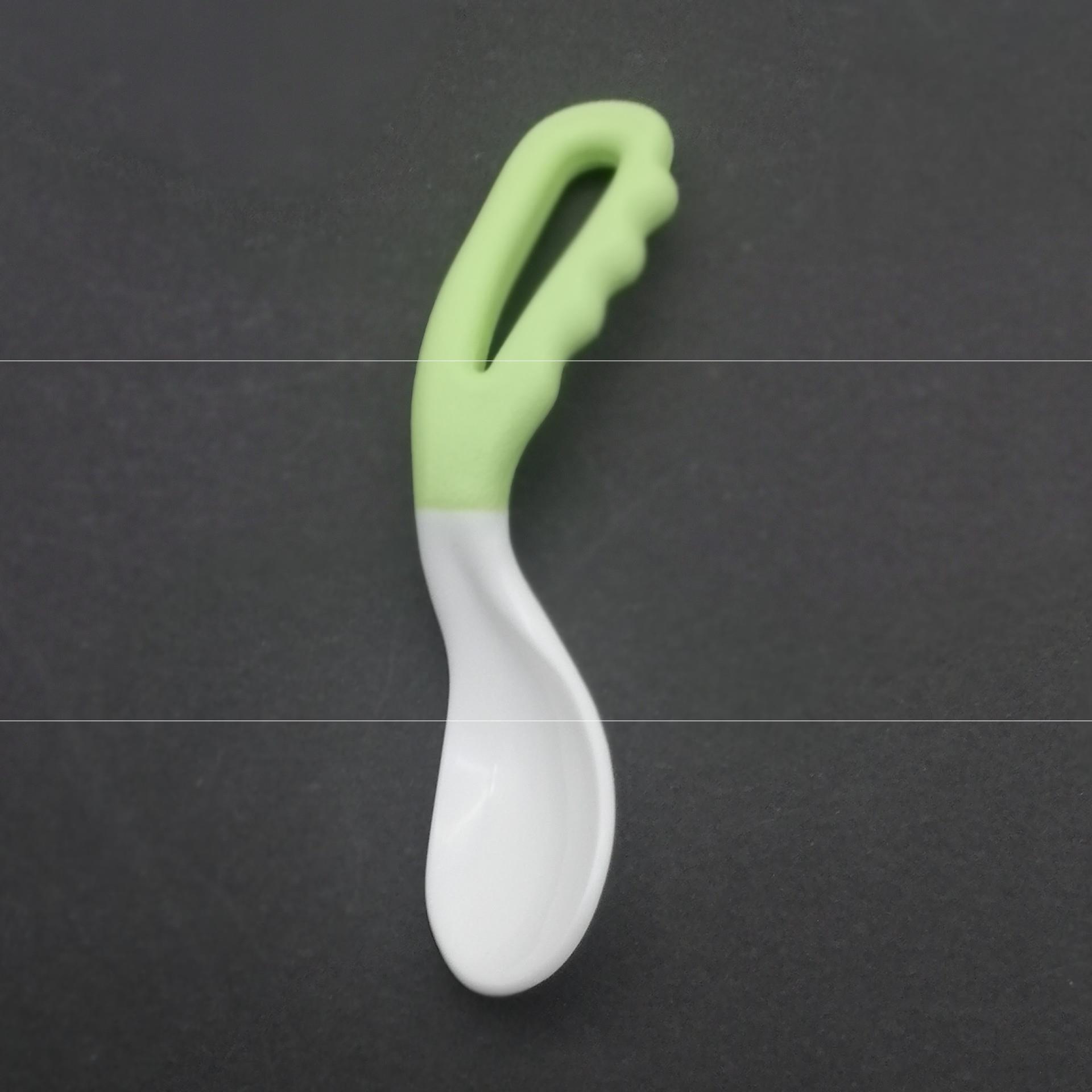 Product name: Baby curved spoon baby training spoon children's meal spoon feeding auxiliary curved spoonColor: green orangematerial: plastic