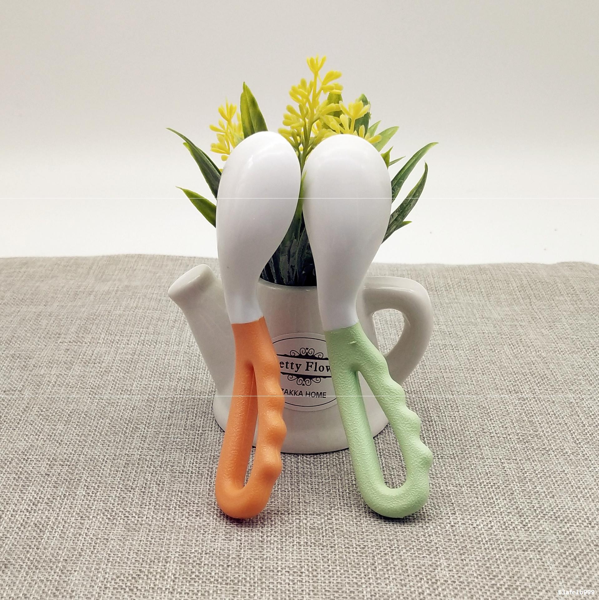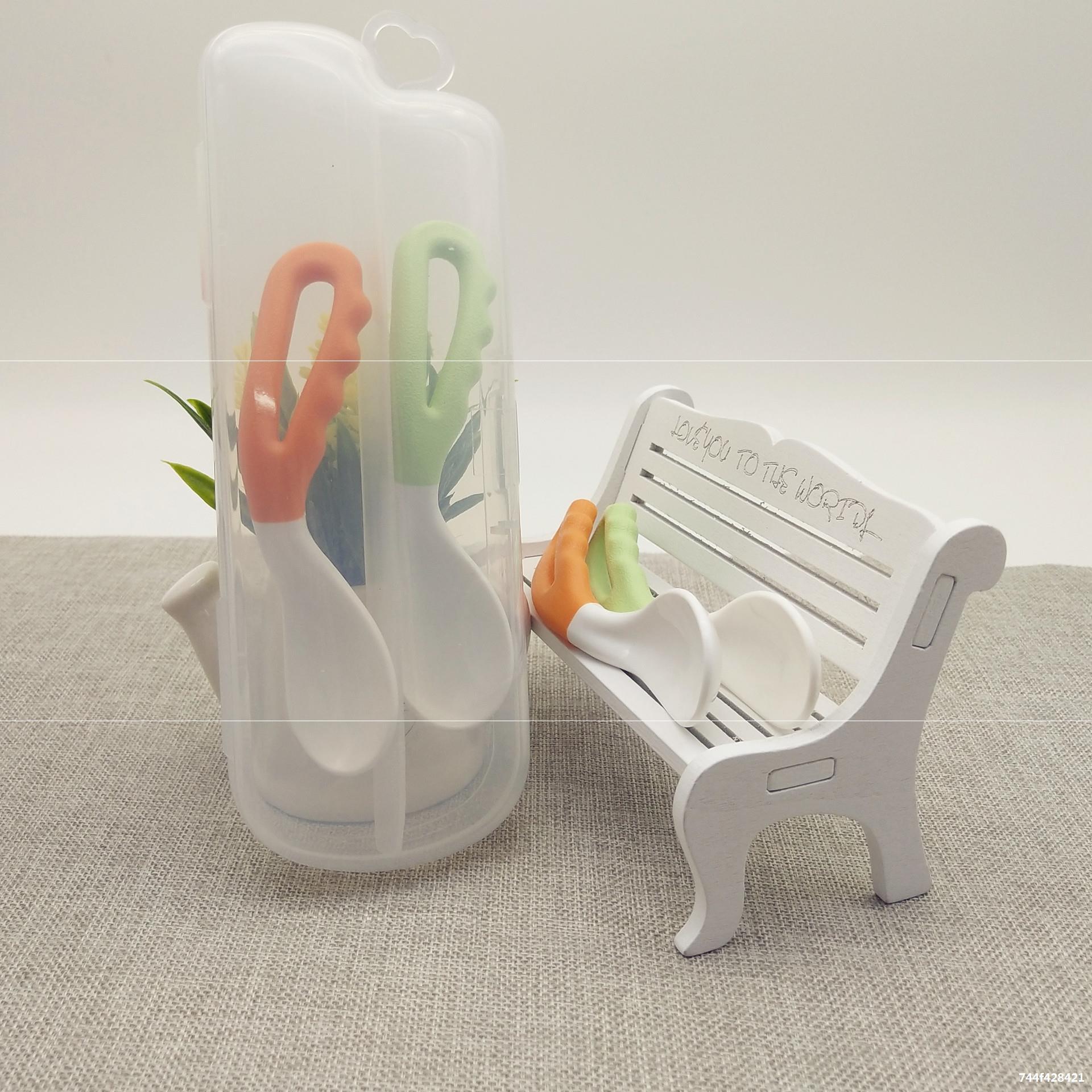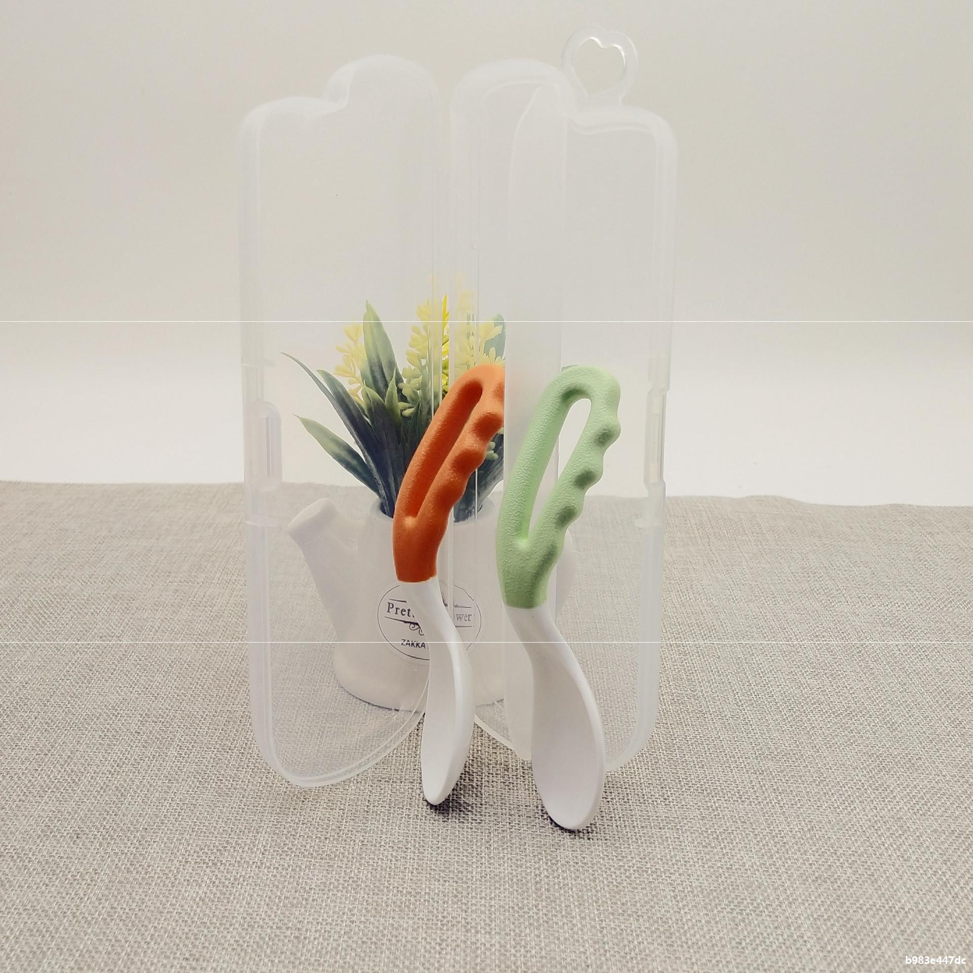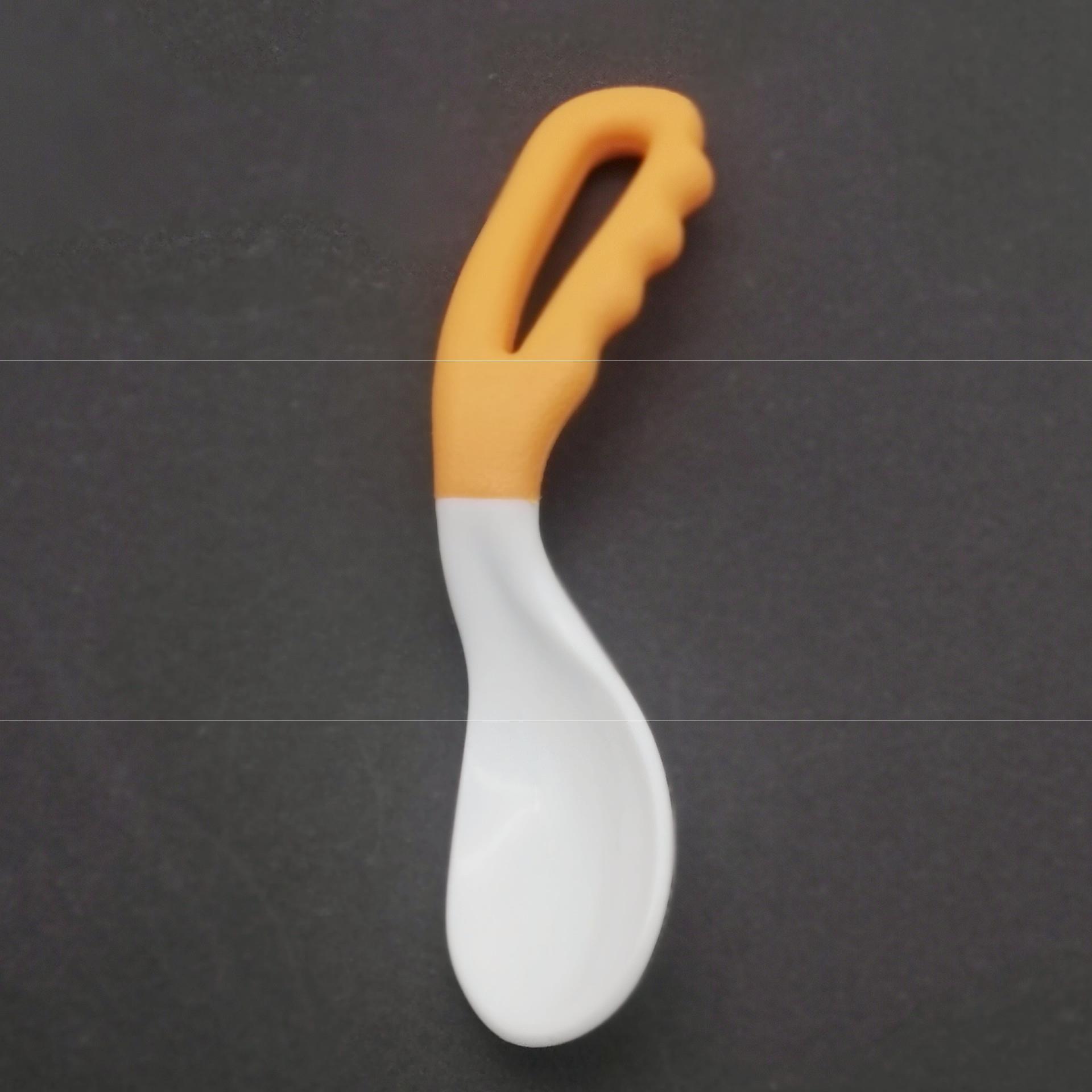 Product name: Baby curved spoon baby training spoon children's meal spoon feeding auxiliary curved spoonColor: green orangematerial: plastic