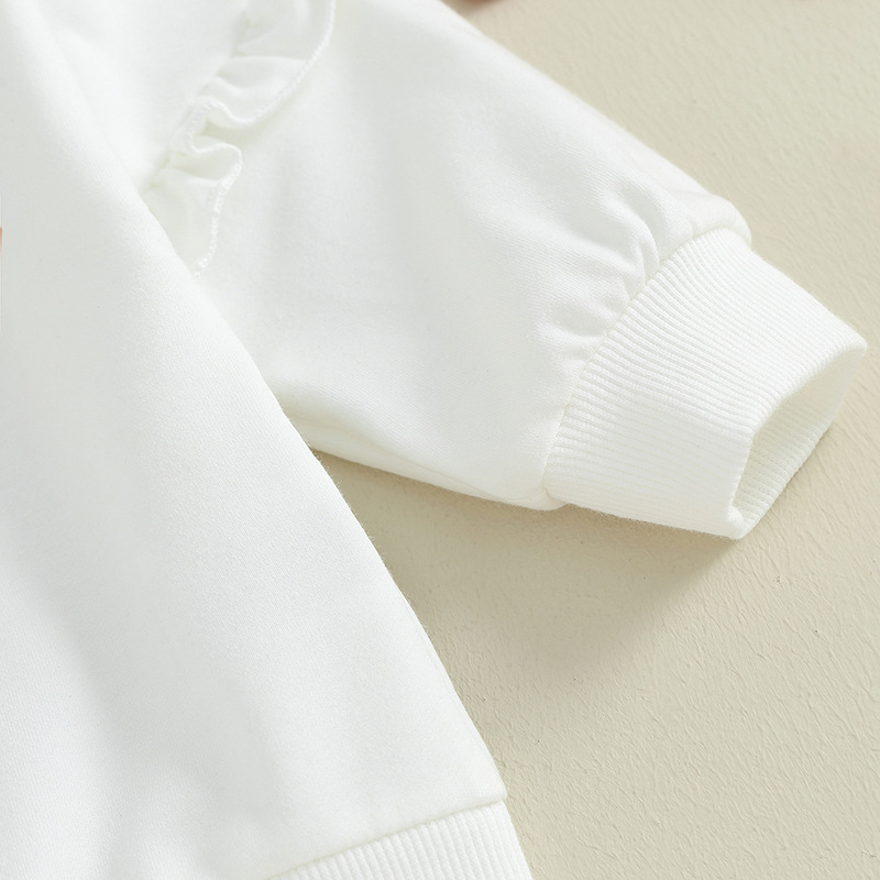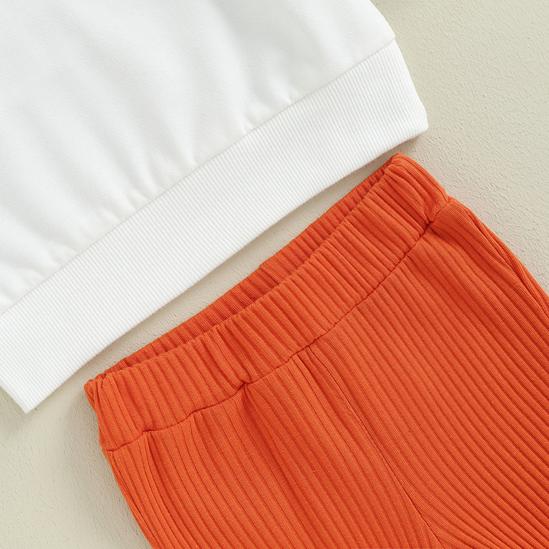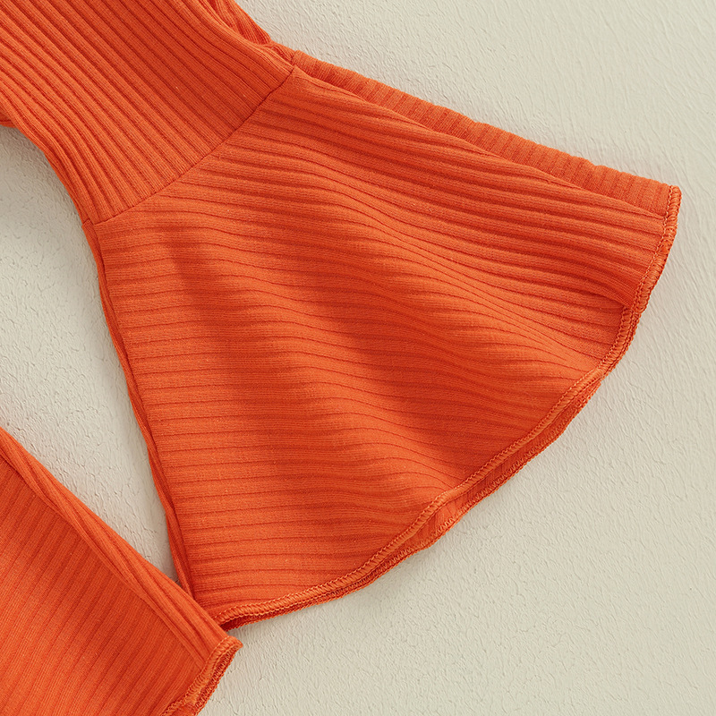 Children Ruffles Sleeve Sweater Sunken Stripe Cotton Bell-bottom Pants Suit