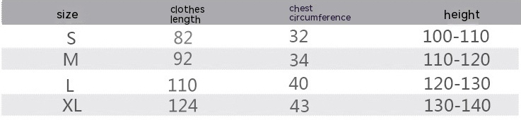 Suitable height: S(105-115),M(115-125),L(125-135),XL(135-145)