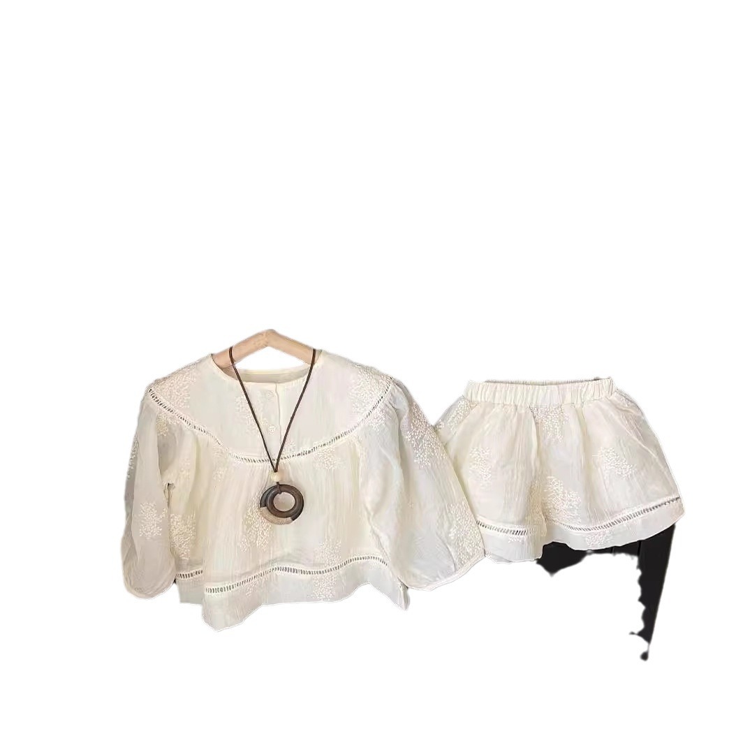 Children's Apricot High-grade Doll Shirt Culottes Two-piece Set