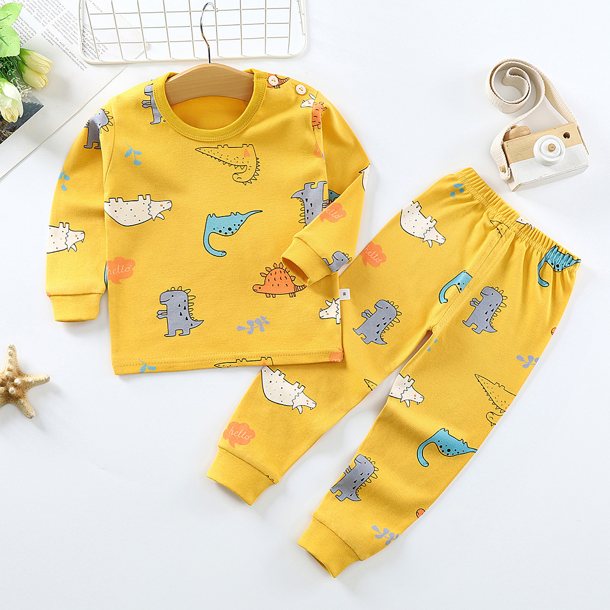 Children's Autumn Clothes Long-Sleeved Pants Suit 21 Spring New Long-Sleeved Children's Underwear Underwear Shoulder Buckle High-Neck Cotton Underwear Home