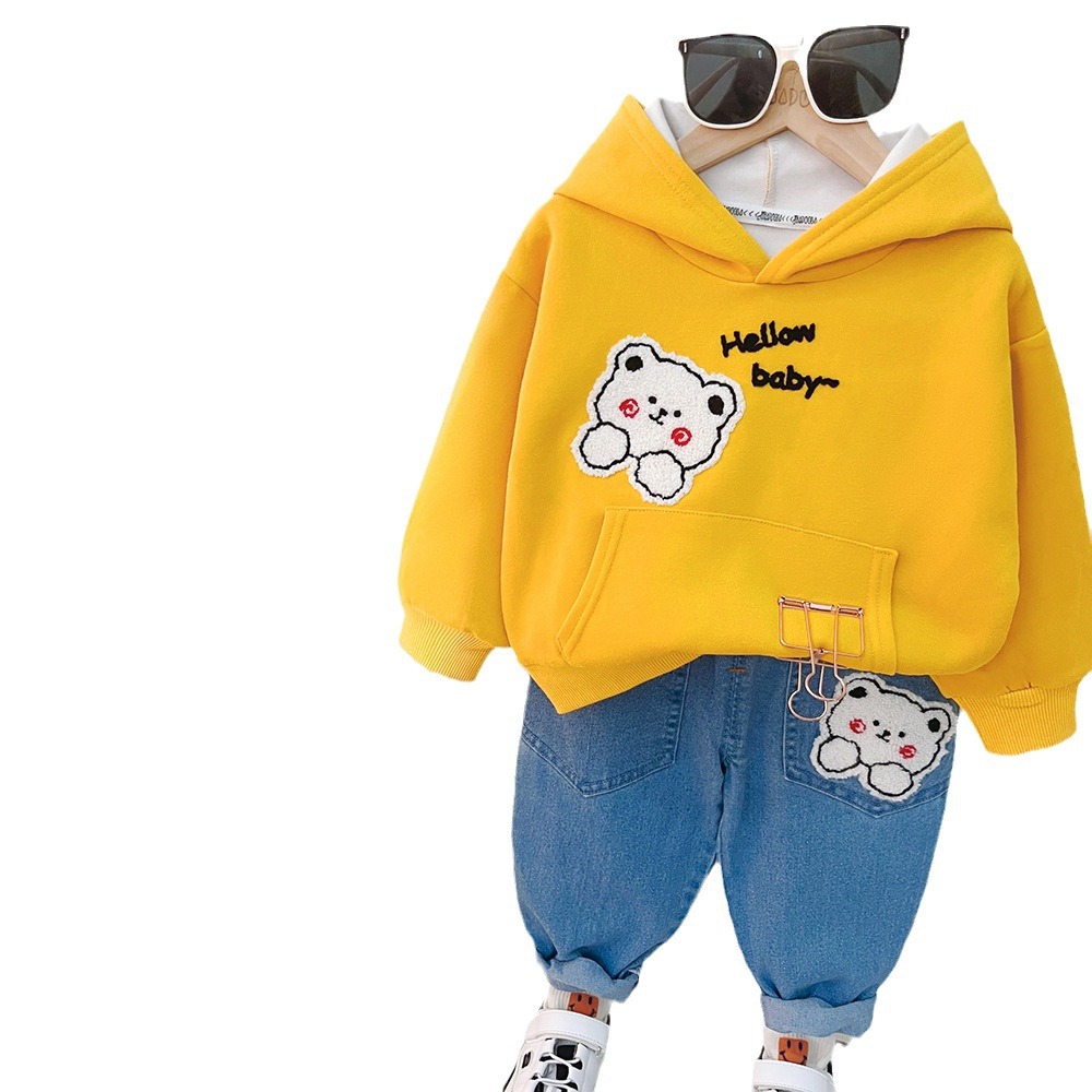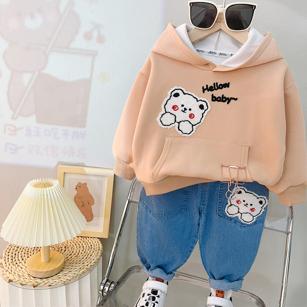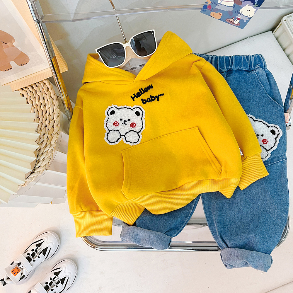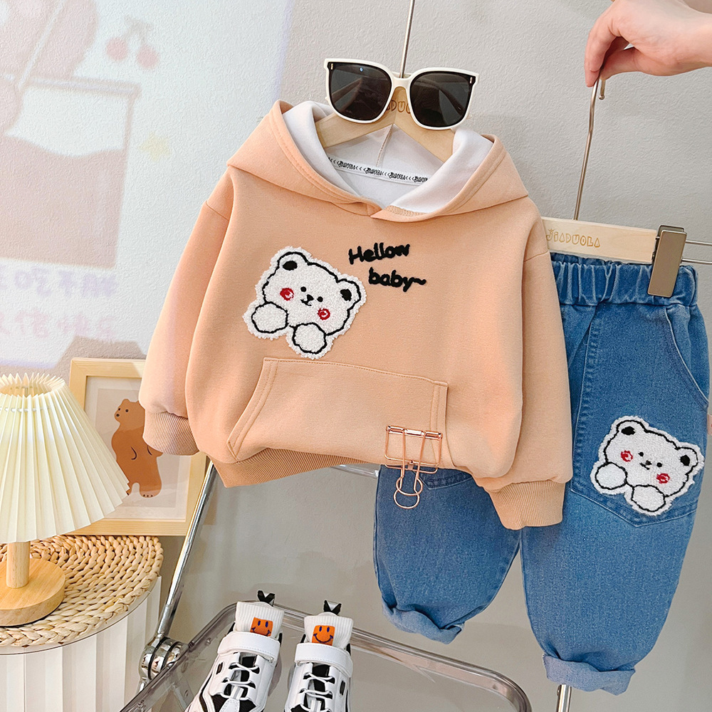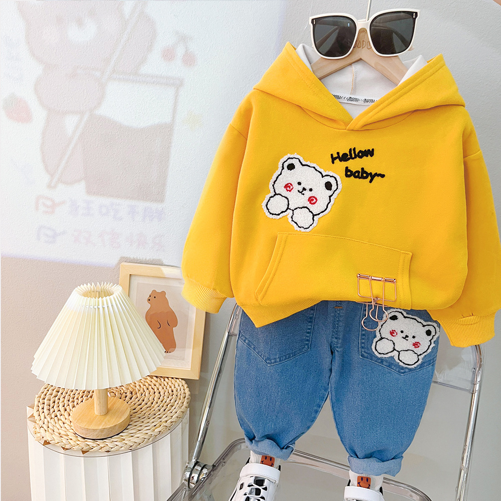 Children's Autumn Clothing Hooded Bear Sweater Pants Two-piece Suit