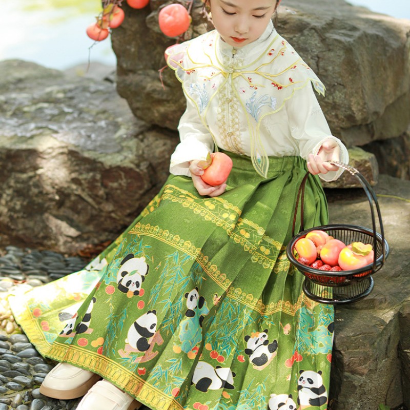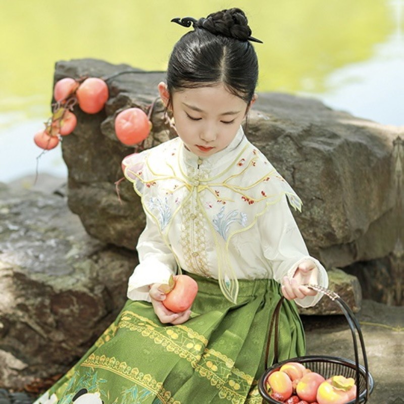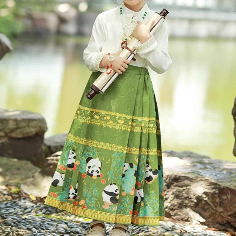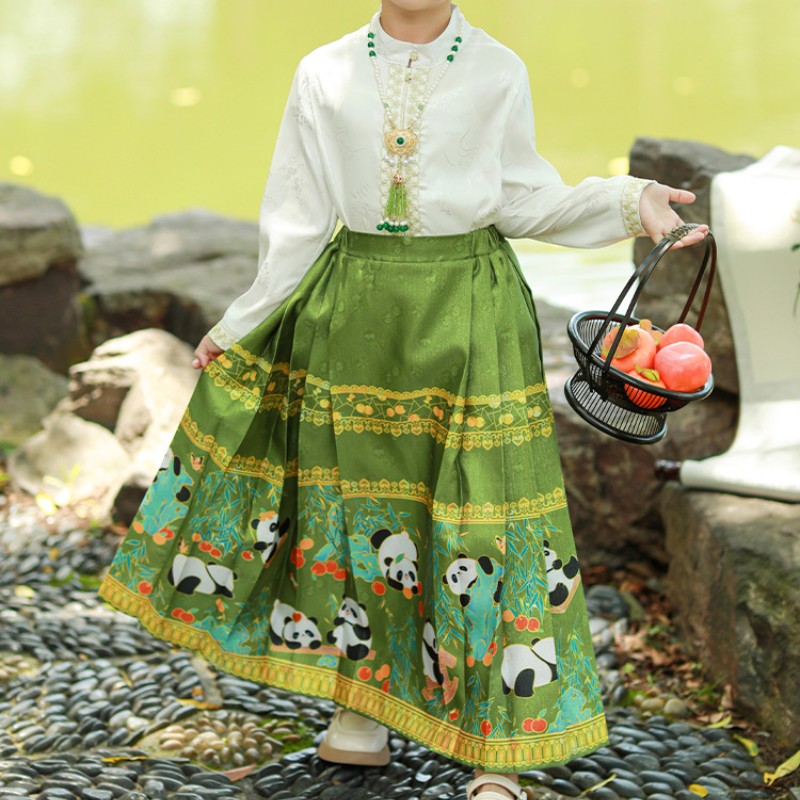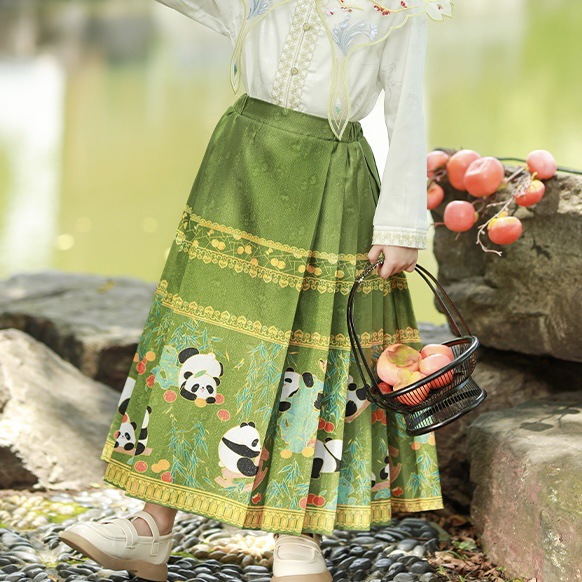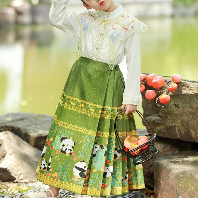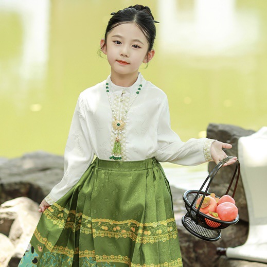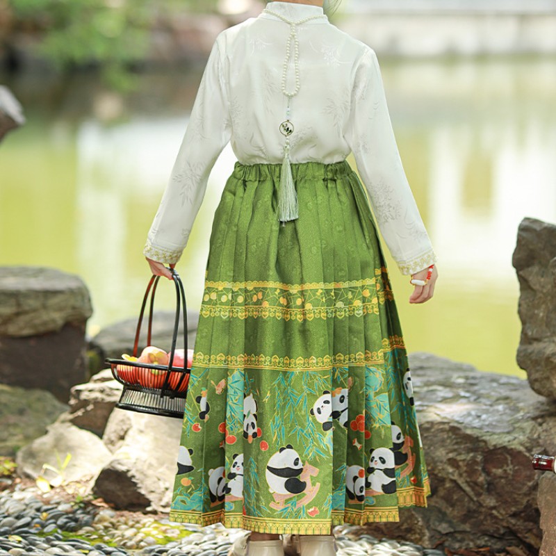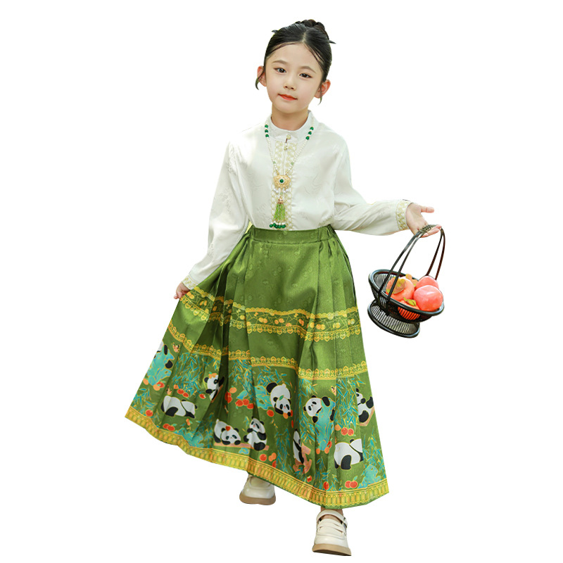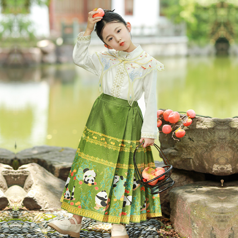 Color: plain white turtleneck (top), bamboo hatchet face skirt (skirt), leaf gold cloud shoulder, top hatchet face skirt cloud shoulder 3-piece set