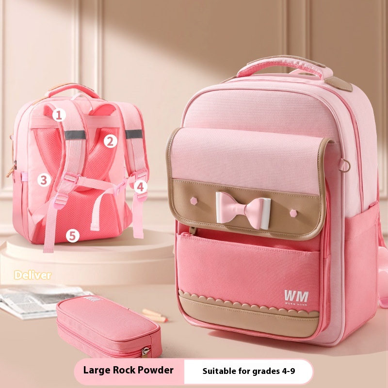 4 Style: Rock pink large-sized (Level 4-9) schoolbag pencil box,