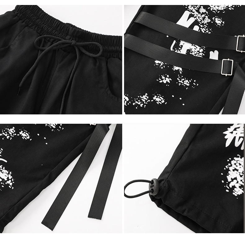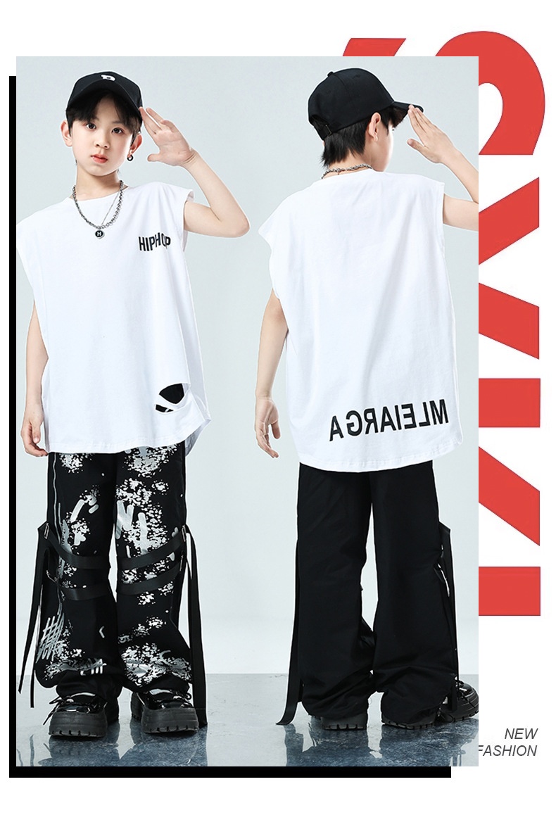 Set B: 362 black drawstring shorts+396 silver cardigan+402 black printed pants,Set C: 302 white ripped sleeveless shirt+396 silver cardigan+402 black printed pants