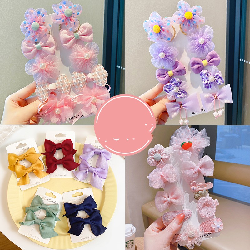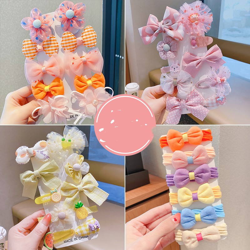Color classification: style 1 pink bow tie 10-piece set (hairpin hair rope)