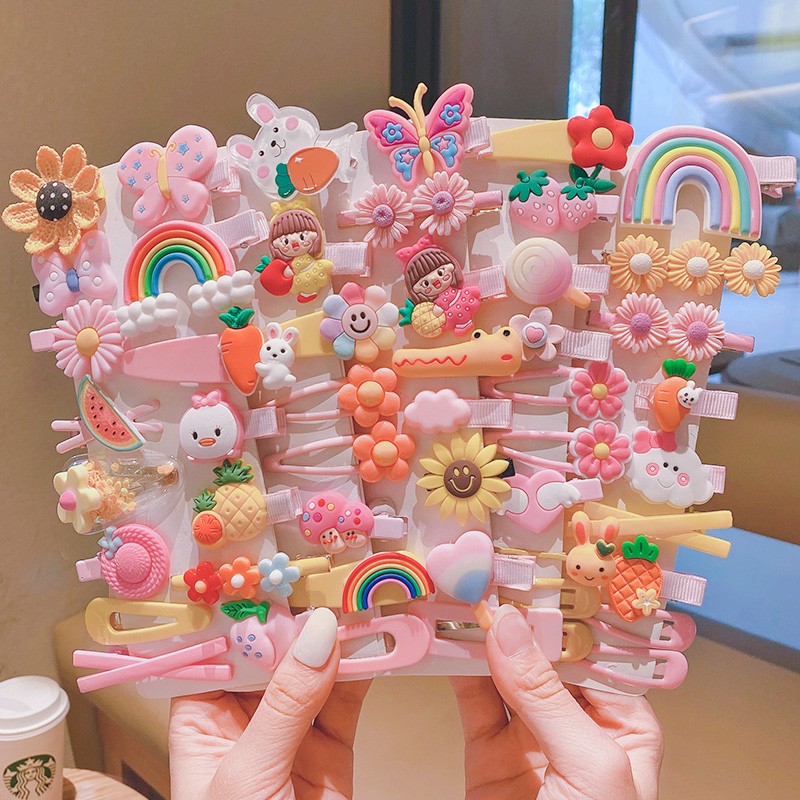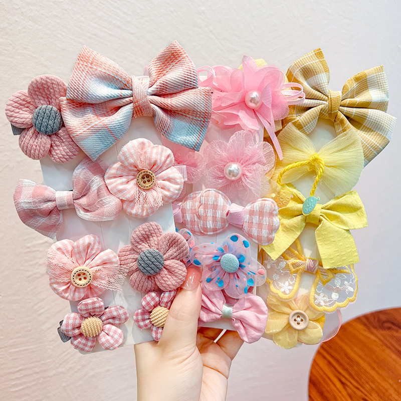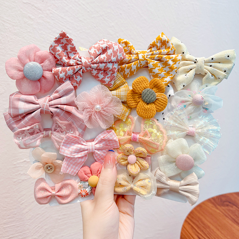 Style 15 pink hairpin + blue hair rope 18 pieces