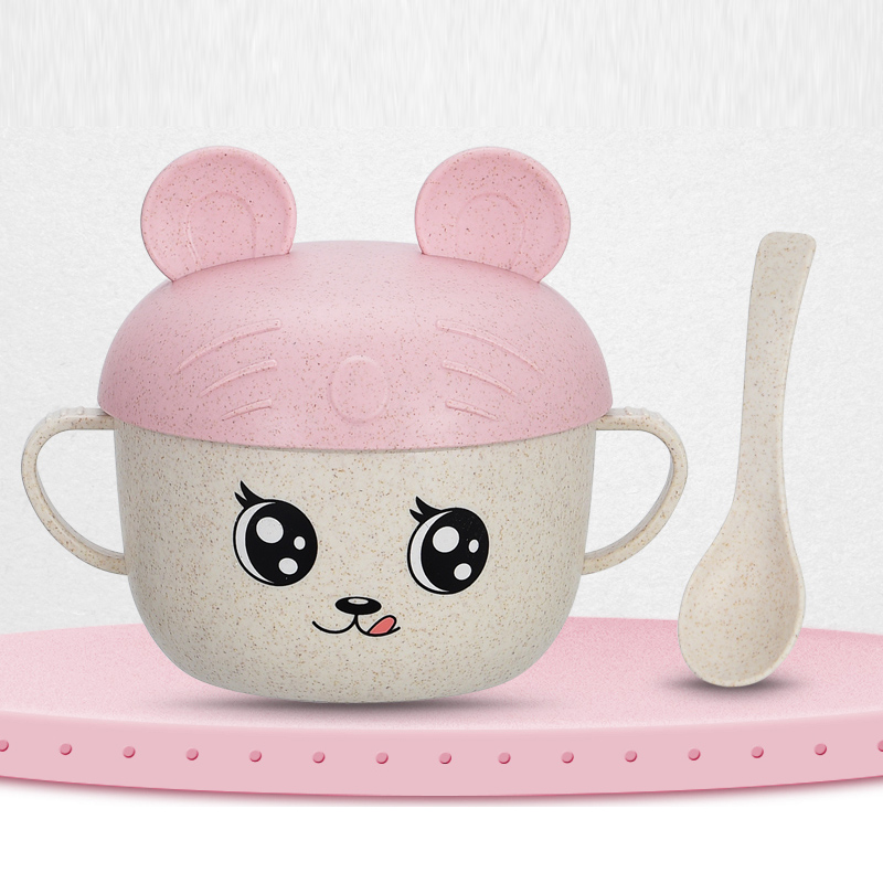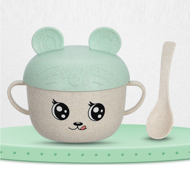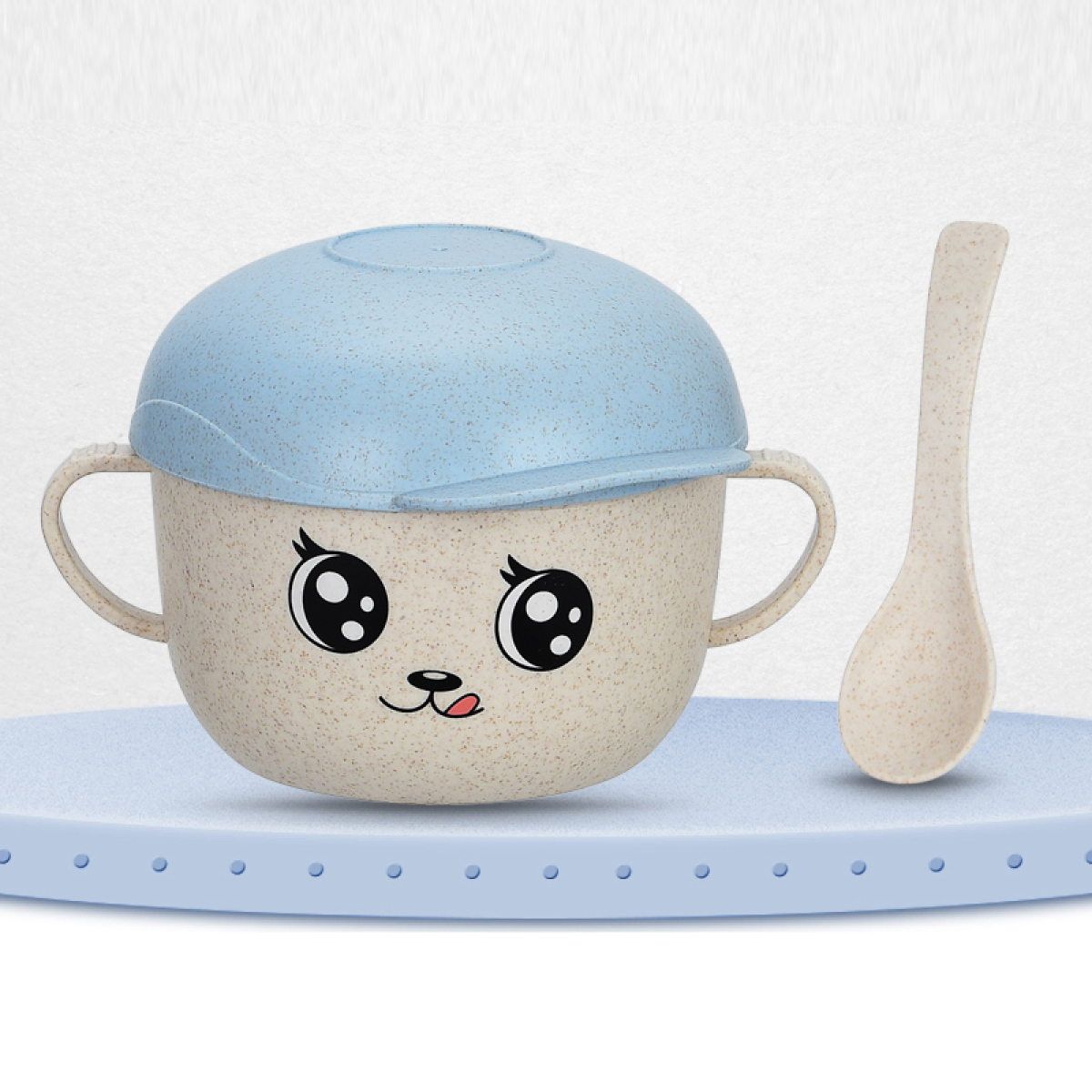 2Pcs/Set Baby Feeding Food Tableware Wheat Cartoon Kids Dishes Children Eating Dinnerware Set Anti-hot Plate Training Bowl+spoon