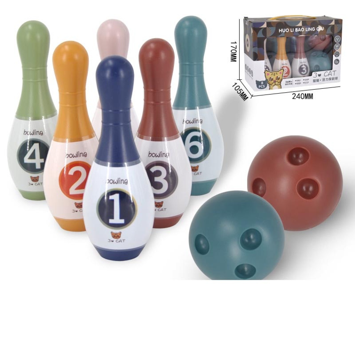 Material: Plastic/PlasticPacking method: color boxColor: bowling ball (brown)Applicable age: children (4-6 years old)