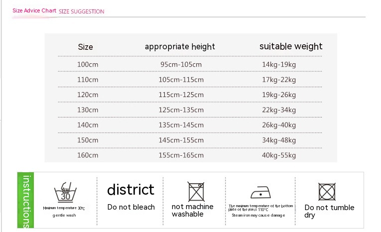 Applicable height: 100cm,110cm,120cm,130cm,140cm,150cm,160cm