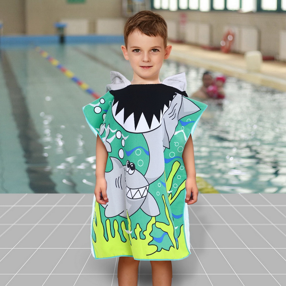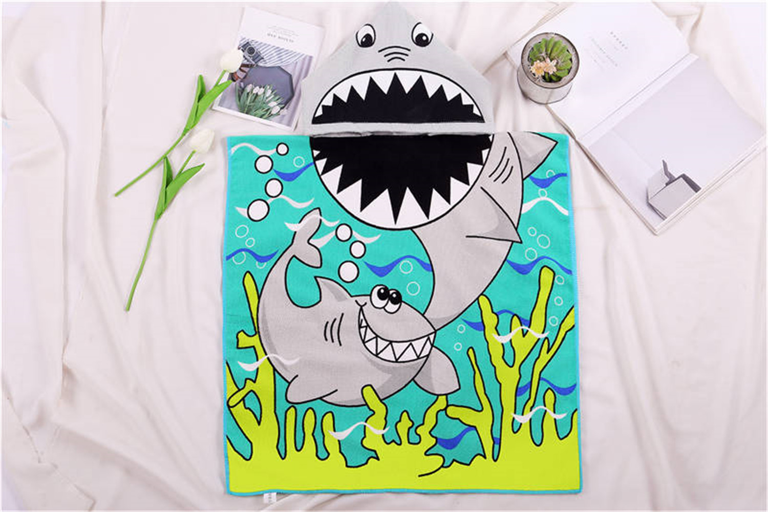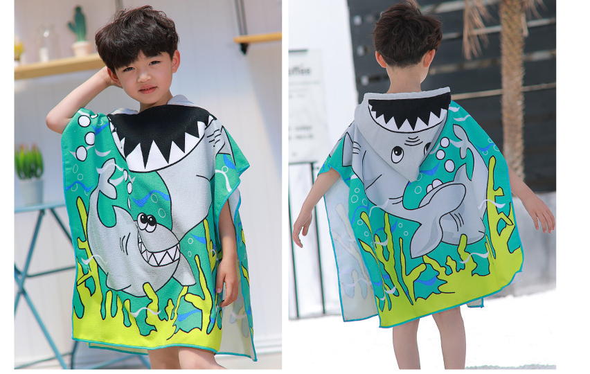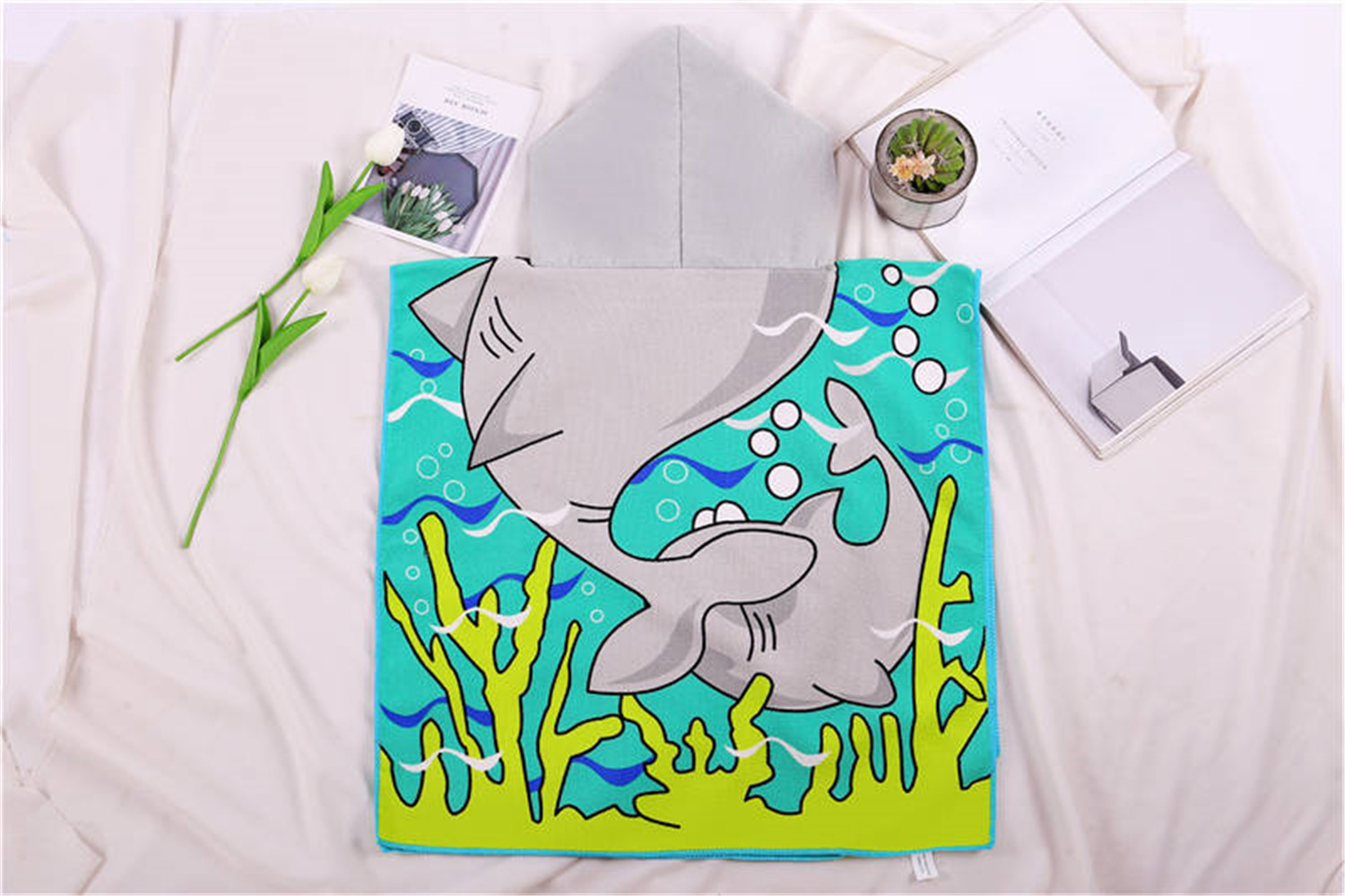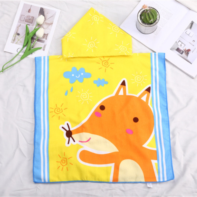 Product features: Children's hooded bathing cape cloak, unfolded into a rectangular bath towel, folded into a bathrobe, hat wide mouth, hem of the hem, cartoon printing, annual sales of hundreds of thousands of pieces, quite popular with children