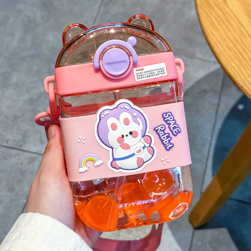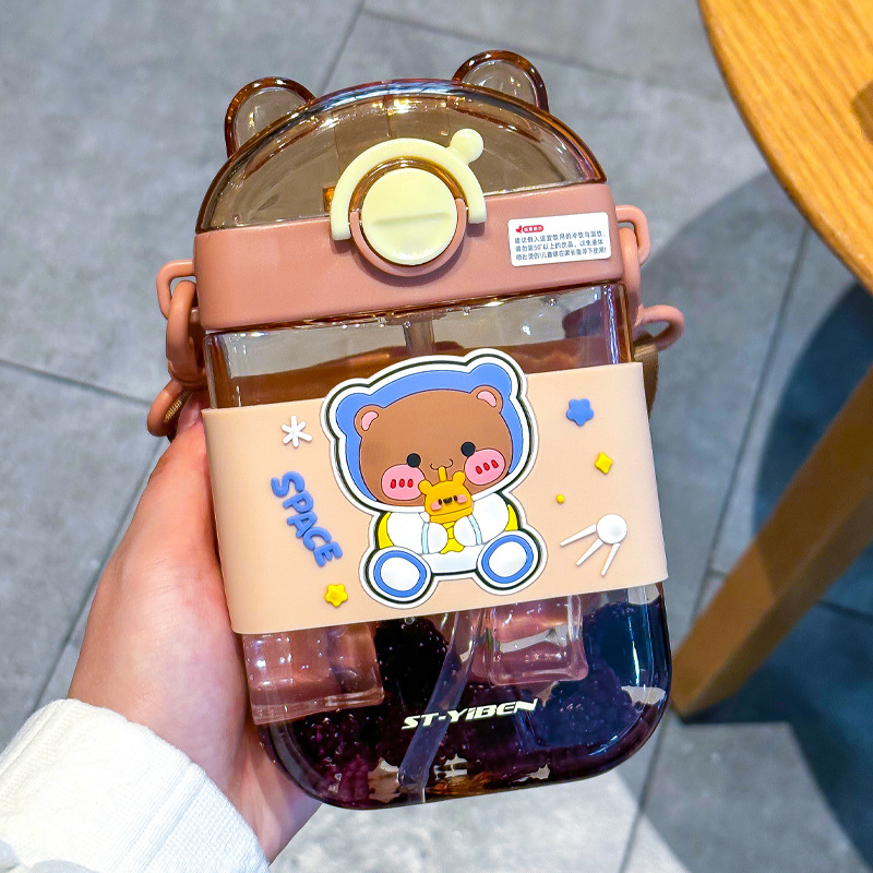 Children's Cartoon Cute Plastic Straw Water Bottle