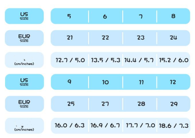 Sizes: 21, 22, 23, 24, 25, 27, 28, 29