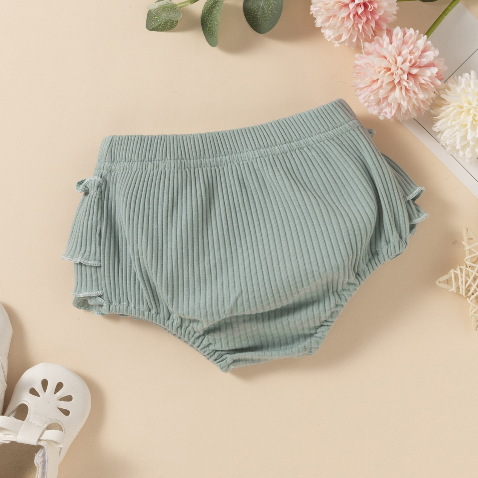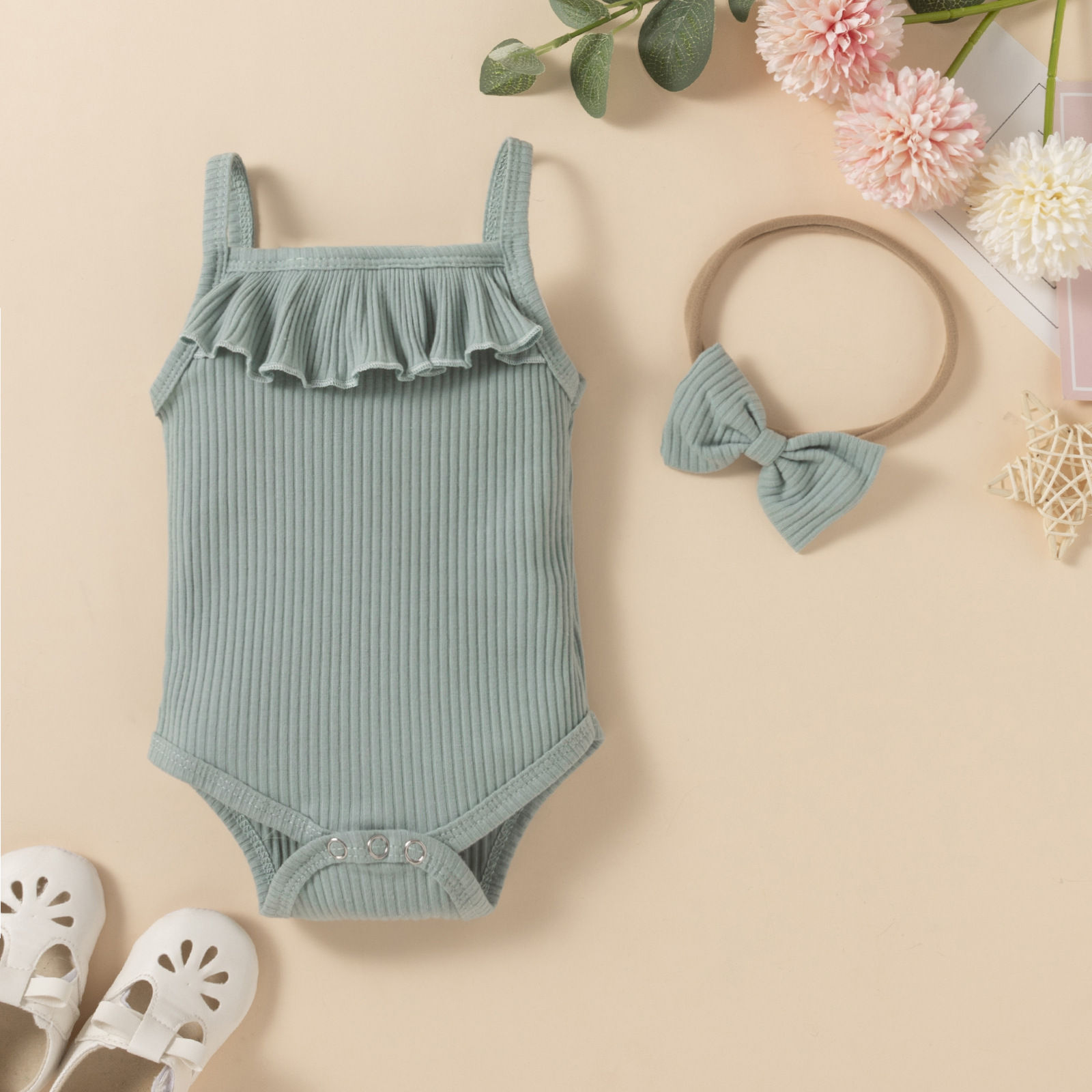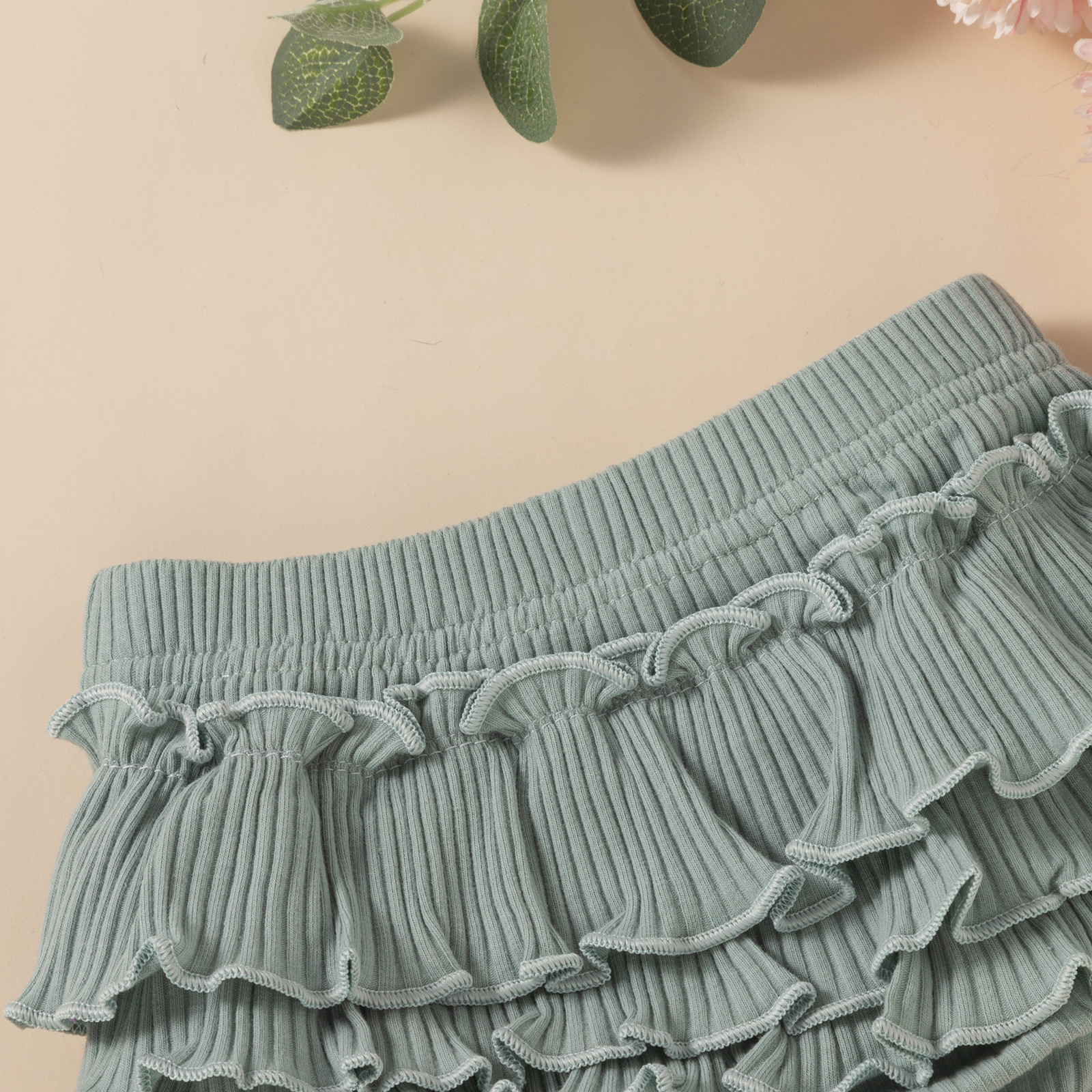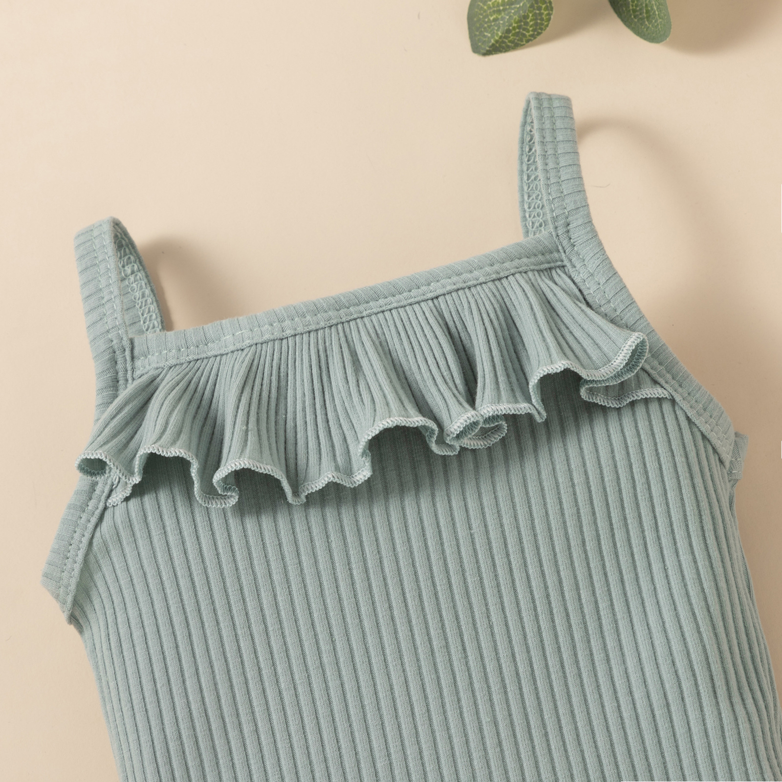 Children's Clothing Baby Solid Color Three-piece Set Sunken Stripe Strap Lace Multi-layer Edge Romper