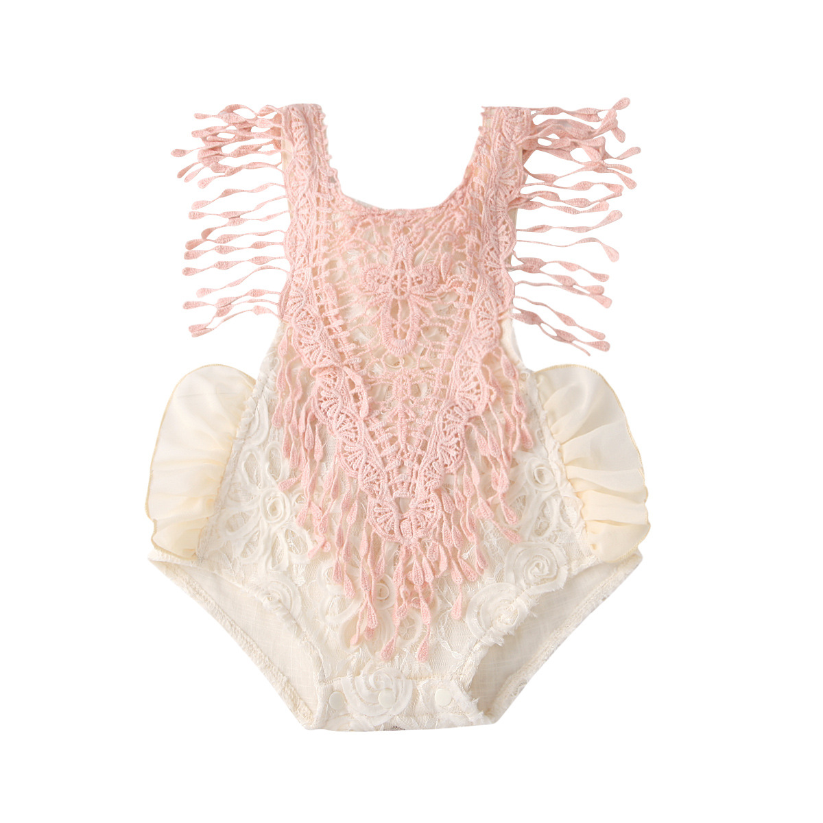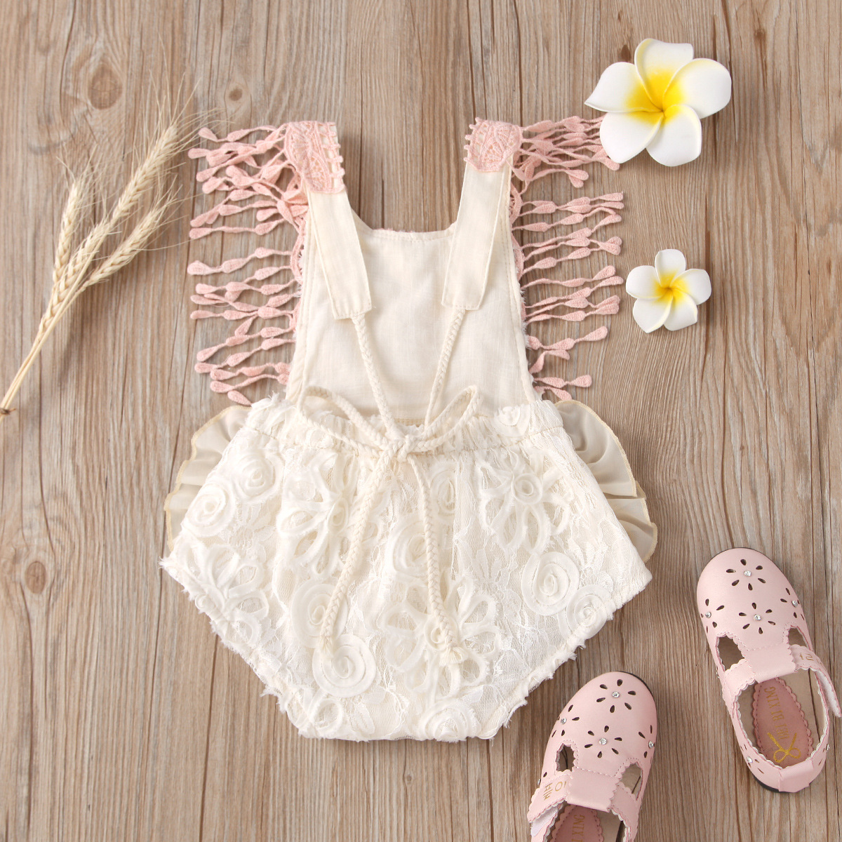 Children's Clothing European And American Style Comfortable Short Climbing Lace Color Block Lace Pattern Baby Triangle Jumpsuit