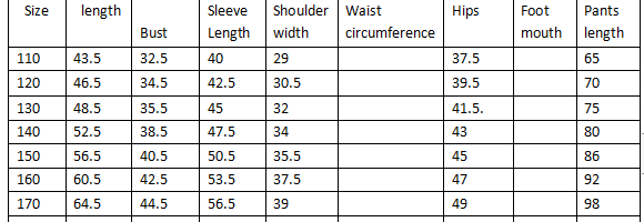 110cm, 120cm, 130cm, 140cm, 150cm, 160cm, 170cm