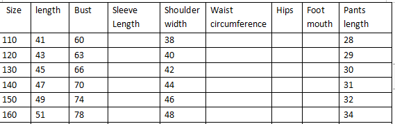 110cm, 120cm, 130cm, 140cm, 150cm, 160cm