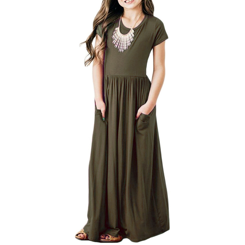 Children's Clothing Short Sleeve Solid Color Dress